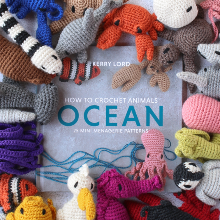Inside OCEAN you will find the patterns to make the following 25 mini animals: Jellyfish, Sardine, Octopus , Urchin, Pufferfish, Squid, Starfish, Turtle, Crab, Sea Slug, Lobster, Hermit Crab, Seahorse, Prawn, Pelican, Ray, Shark, Blue Whale, Narwhal, Sea Snake, Hammerhead Shark, Clownfish, Mackerel, Penguin and Conch Shell.