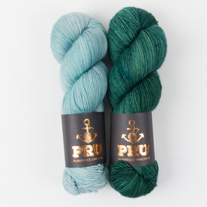 This dynamic duo from Punk Rock Unicorn contains two gorgeous skeins of fingering weight yarn. If you need some inspiration, they can be used to knit any of these Westknits shawls.