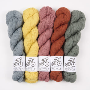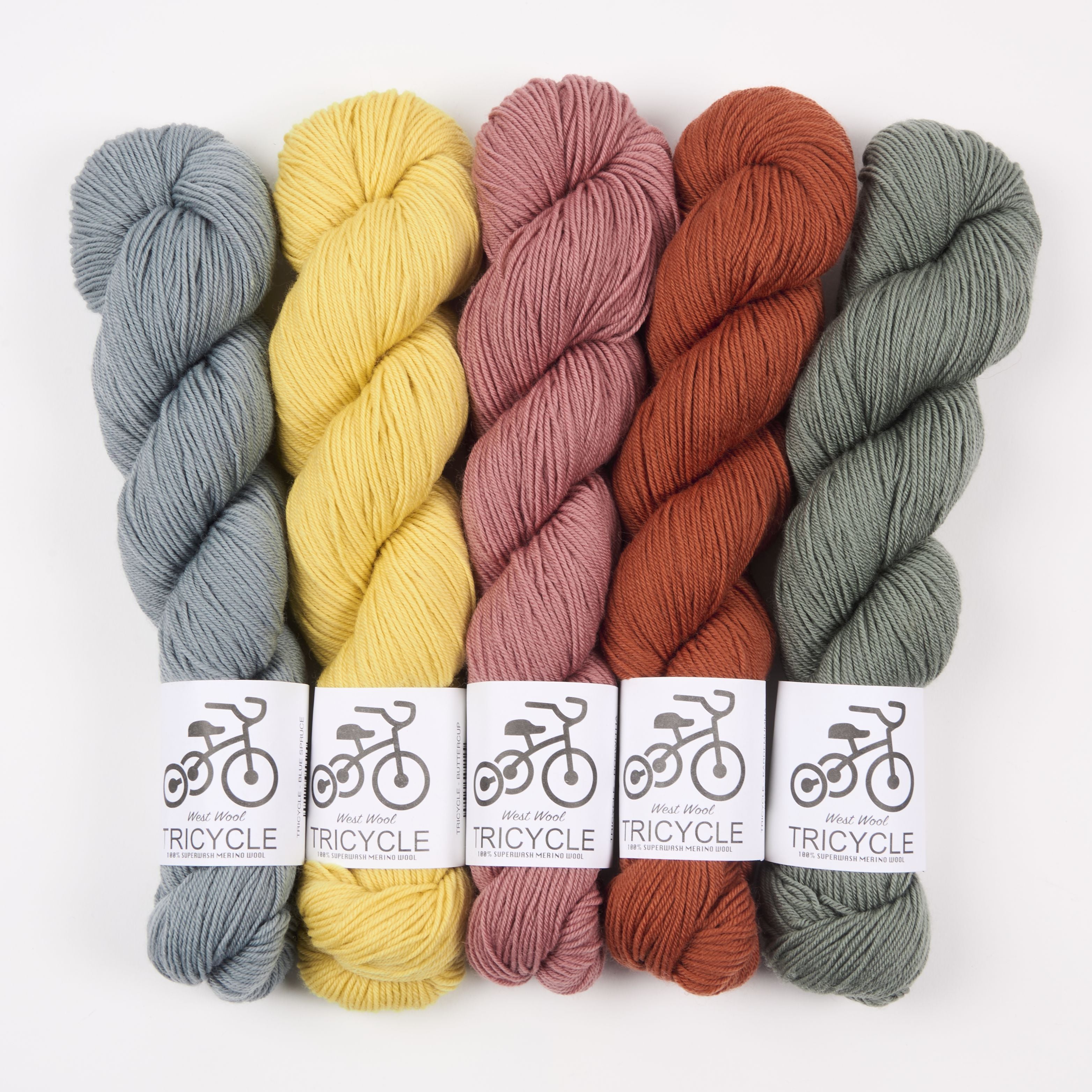 This beautiful West Wool kit contains ten skeins of fingering weight yarn. If you're looking for project inspiration, it will work up perfectly for any of these Westknits shawls.