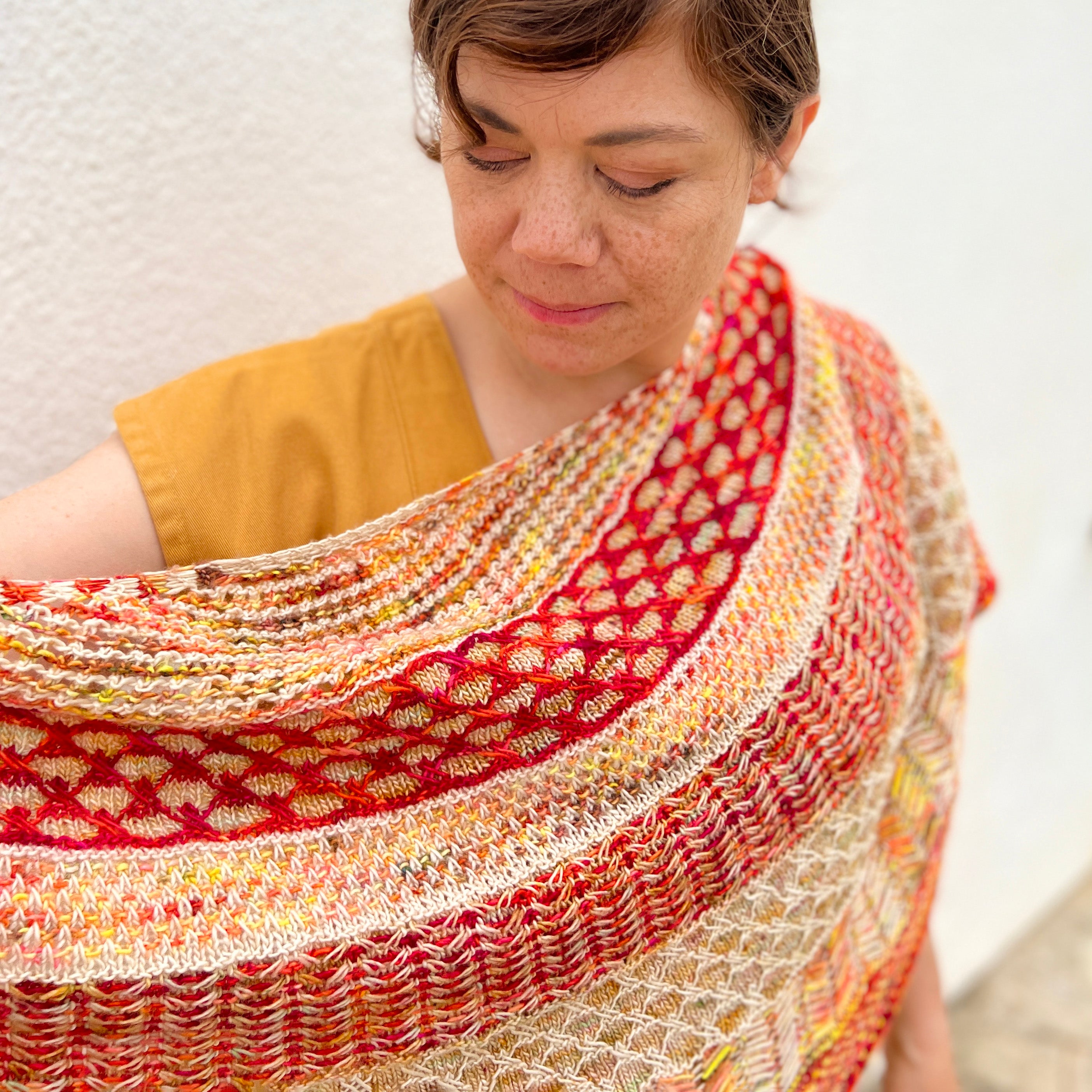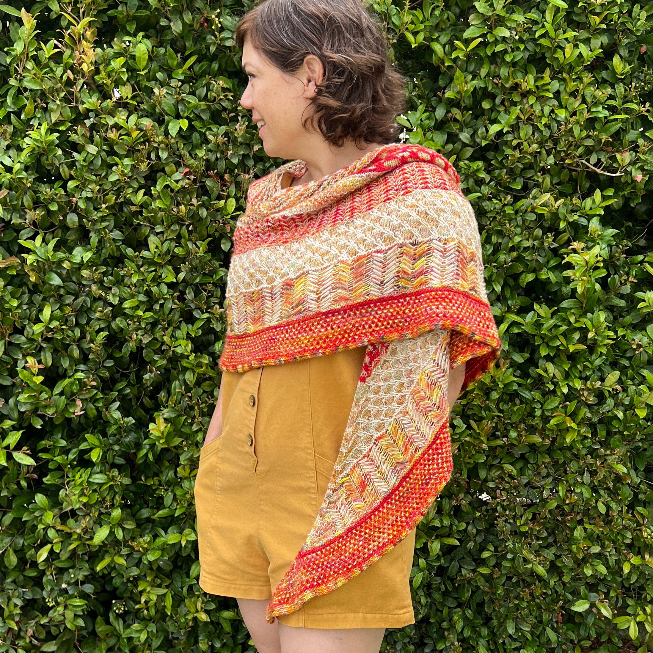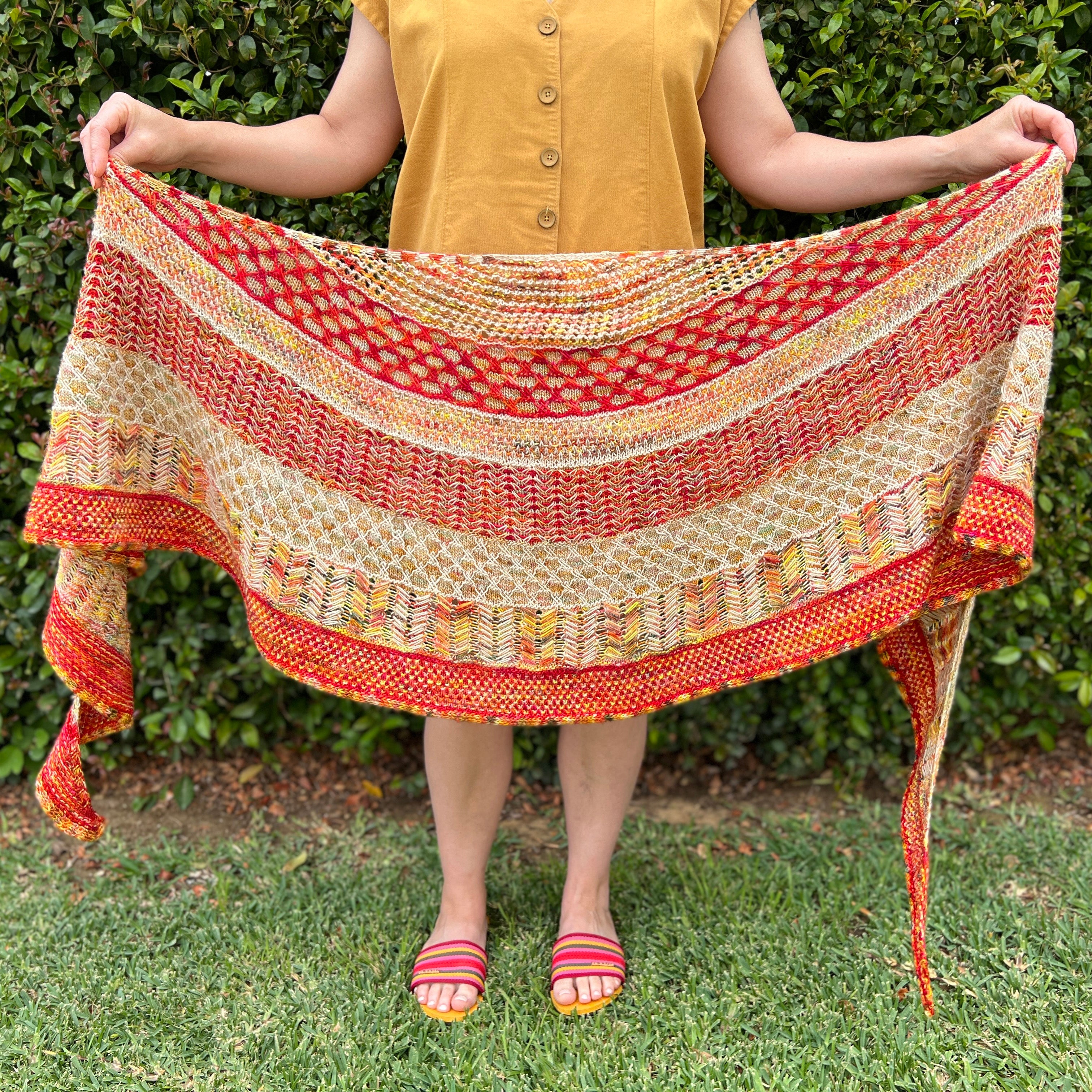 Stitch patterns with extraordinary visual appeal really make my heart swell. I find new stitch tricks and interesting or unexpected results a huge part of my motivation as a knitter. In Mautinoa, a shawl named after my father, I hope you will be challenged and excited to get each new section because of the interesting and unexpected look of each stitch pattern. Mautinoa means “to be confident” in my father’s native language of Samoan and I am confident that this shawl will soon become one of your favorite makes!