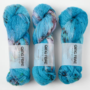 Qing Fibre’s Melted Baby Suri is a fluffy blend of Baby Suri Alpaca, Merino, and Silk. Perfect for cloudy soft garments and accessories.