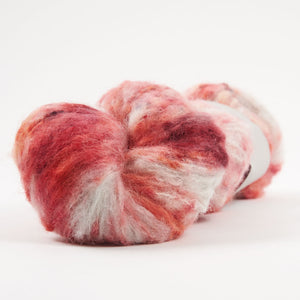Qing Fibre’s Melted Baby Suri is a fluffy blend of Baby Suri Alpaca, Merino, and Silk. Perfect for cloudy soft garments and accessories.