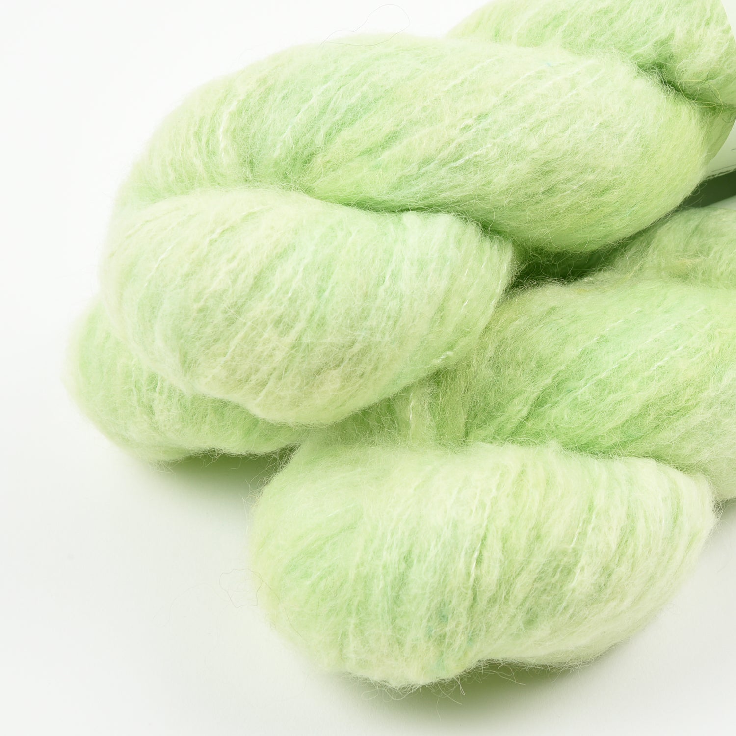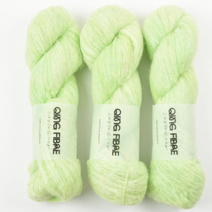 Qing Fibre’s Melted Baby Suri is a fluffy blend of Baby Suri Alpaca, Merino, and Silk. Perfect for cloudy soft garments and accessories.