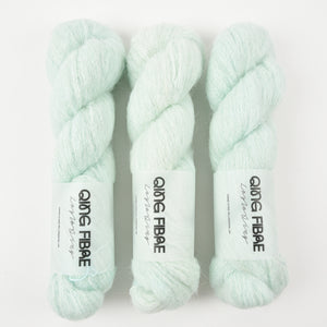 Qing Fibre’s Melted Baby Suri is a fluffy blend of Baby Suri Alpaca, Merino, and Silk. Perfect for cloudy soft garments and accessories.