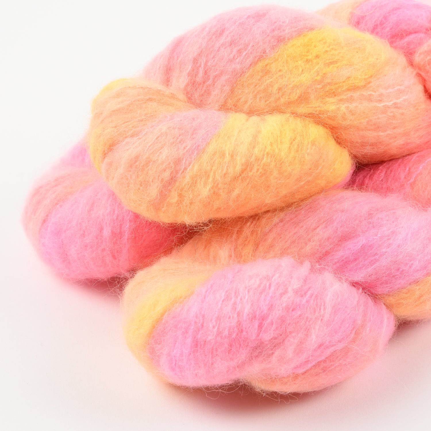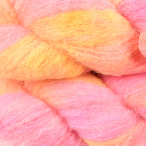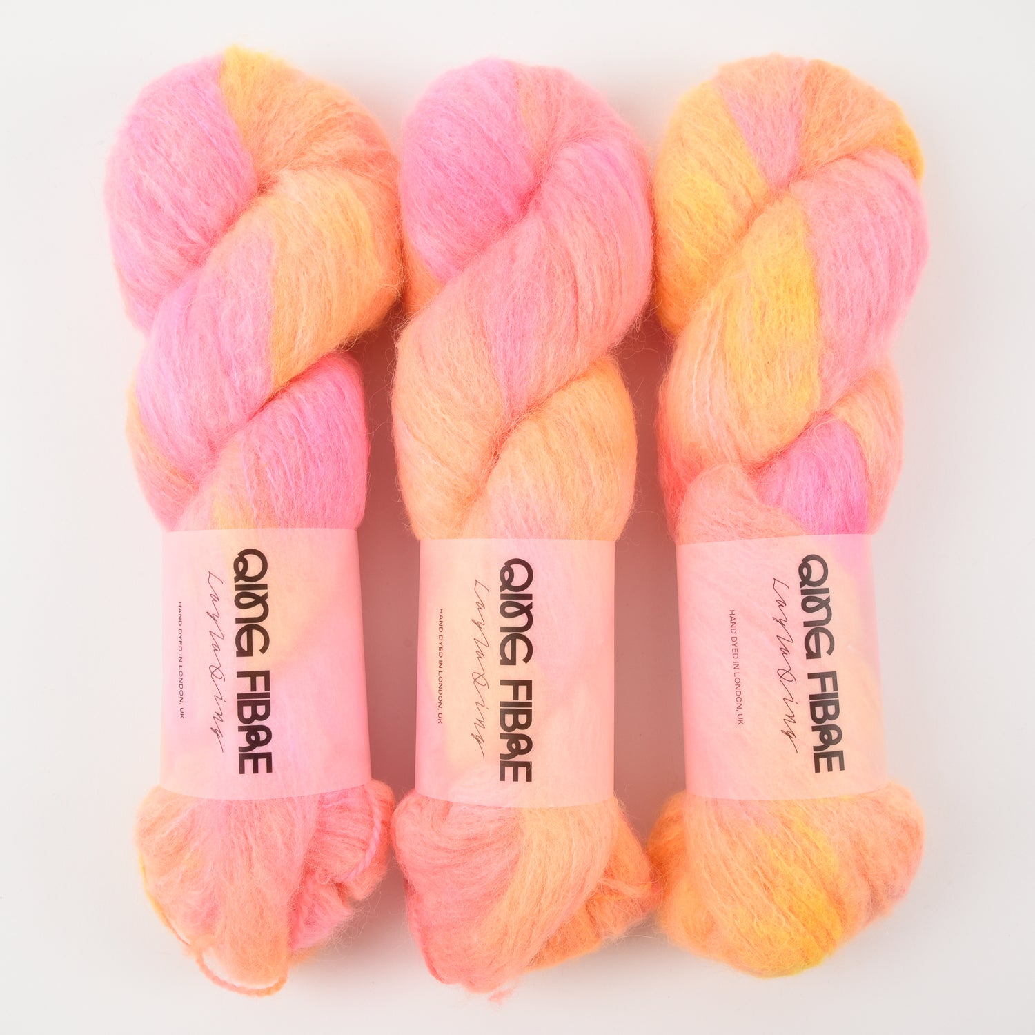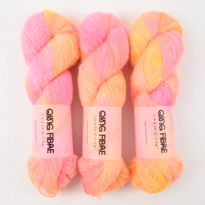 Qing Fibre’s Melted Baby Suri is a fluffy blend of Baby Suri Alpaca, Merino, and Silk. Perfect for cloudy soft garments and accessories.