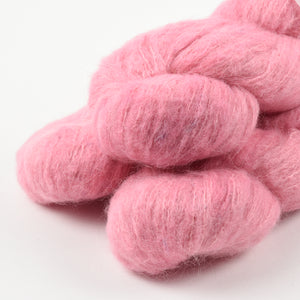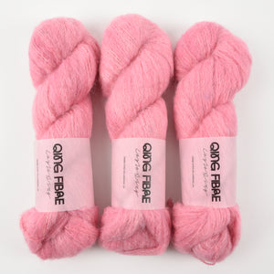 Qing Fibre’s Melted Baby Suri is a fluffy blend of Baby Suri Alpaca, Merino, and Silk. Perfect for cloudy soft garments and accessories.
