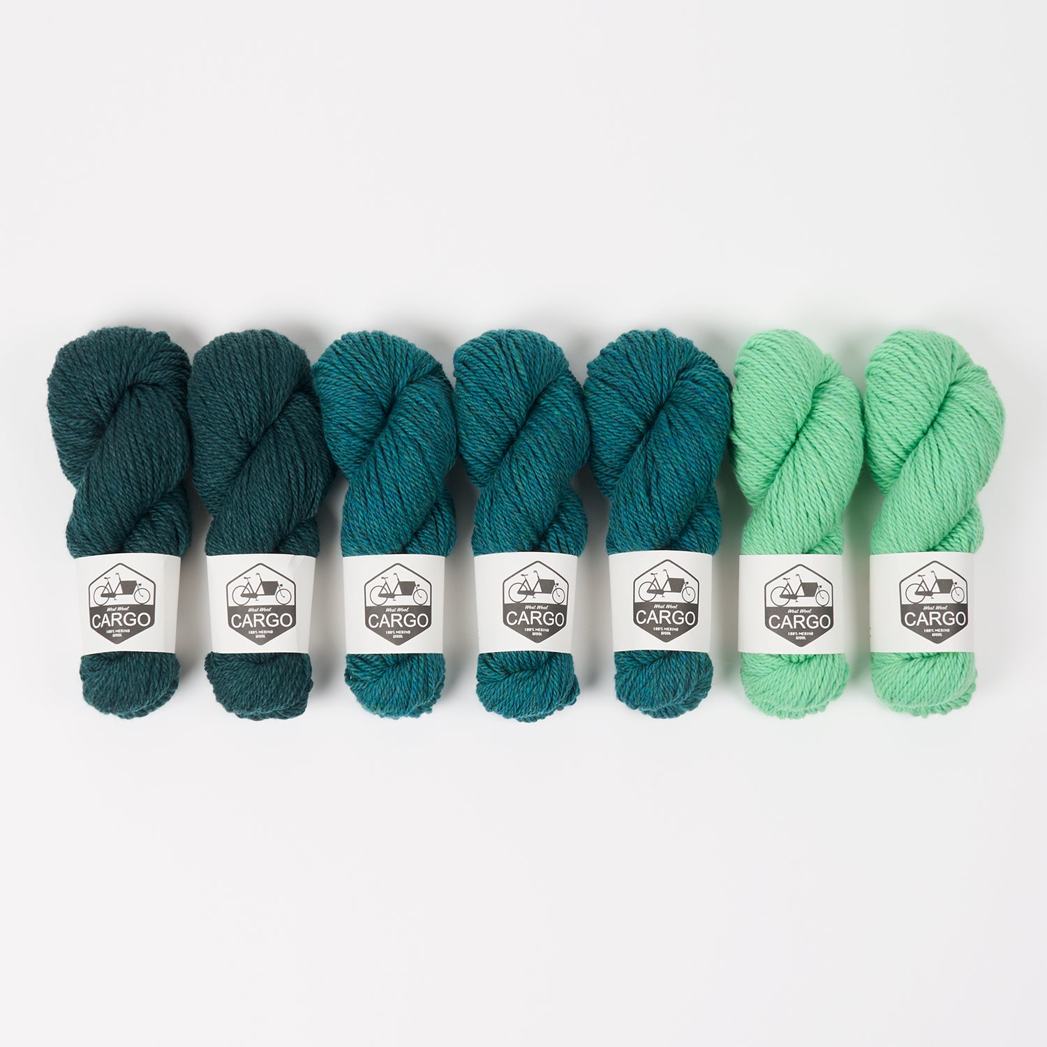 This fabulous kit features seven skeins of West Wool chunky weight Cargo in three contrasting colours. If you need inspiration, it works perfectly for the Esjan Shawl by Westknits!