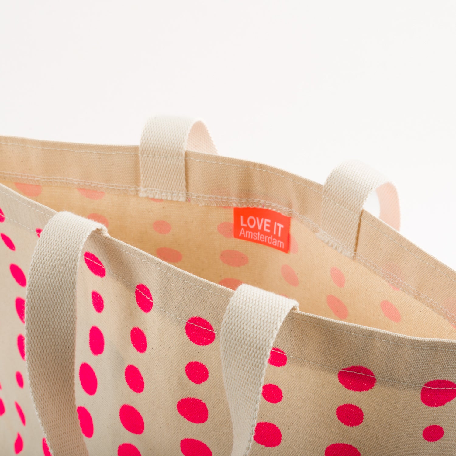 Based on our classic bucket bag shape, they are hand-printed and sewn with 100% GOTS cotton with eco-friendly water based inks. Love It works with a social foundation company which trains and employs women who are new locals in Amsterdam who have emigrated from all over the globe and face employment challenges.
