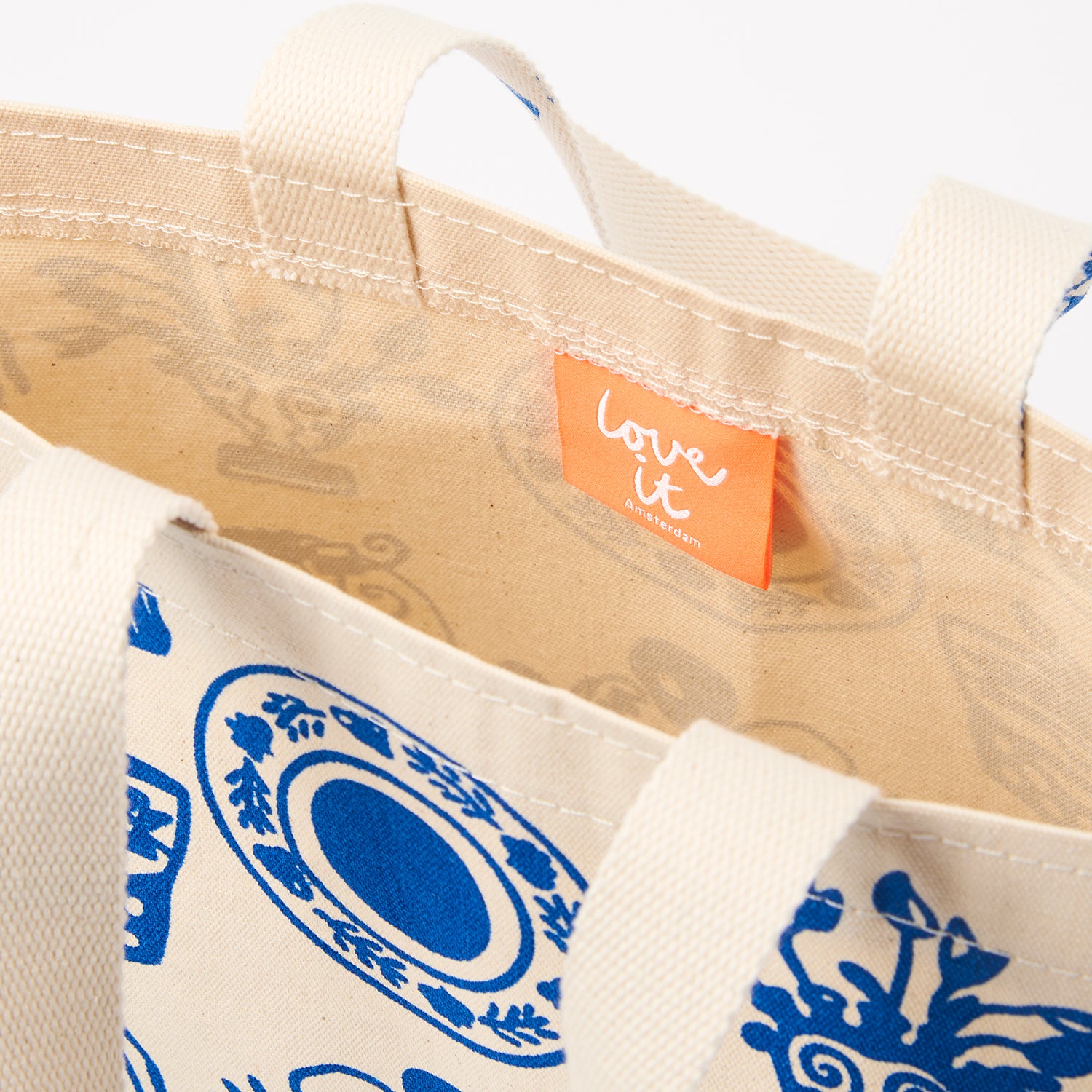 Based on our classic bucket bag shape, they are hand-printed and sewn with 100% GOTS cotton with eco-friendly water based inks. Love It works with a social foundation company which trains and employs women who are new locals in Amsterdam who have emigrated from all over the globe and face employment challenges.