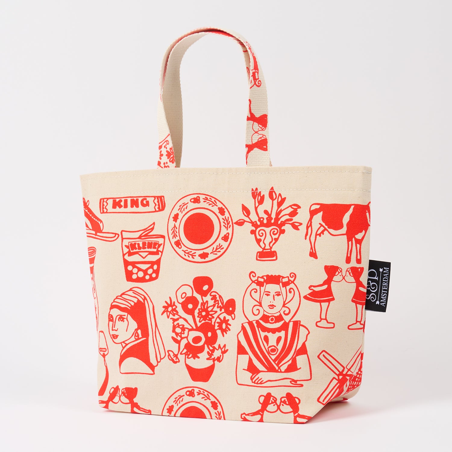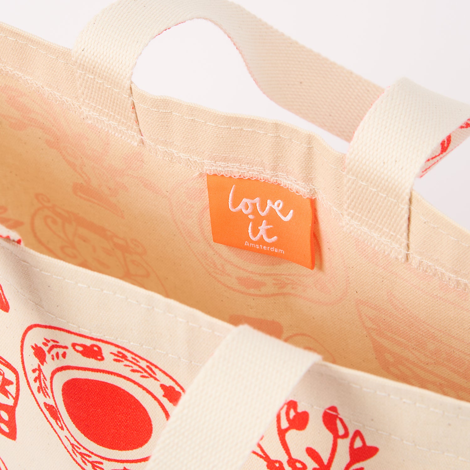 Based on our classic bucket bag shape, they are hand-printed and sewn with 100% GOTS cotton with eco-friendly water based inks. Love It works with a social foundation company which trains and employs women who are new locals in Amsterdam who have emigrated from all over the globe and face employment challenges.