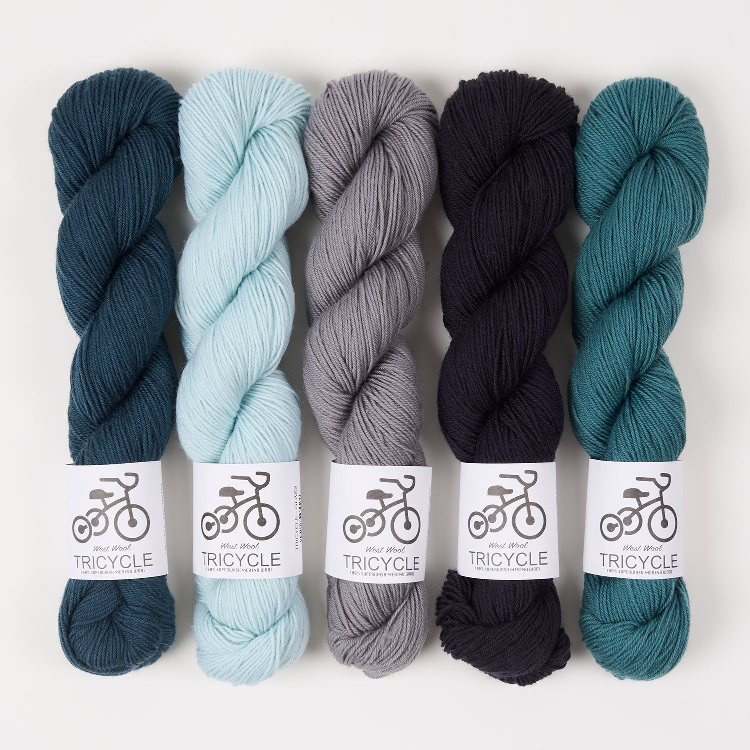 • Two skeins West Wool Tricycle in North Sea