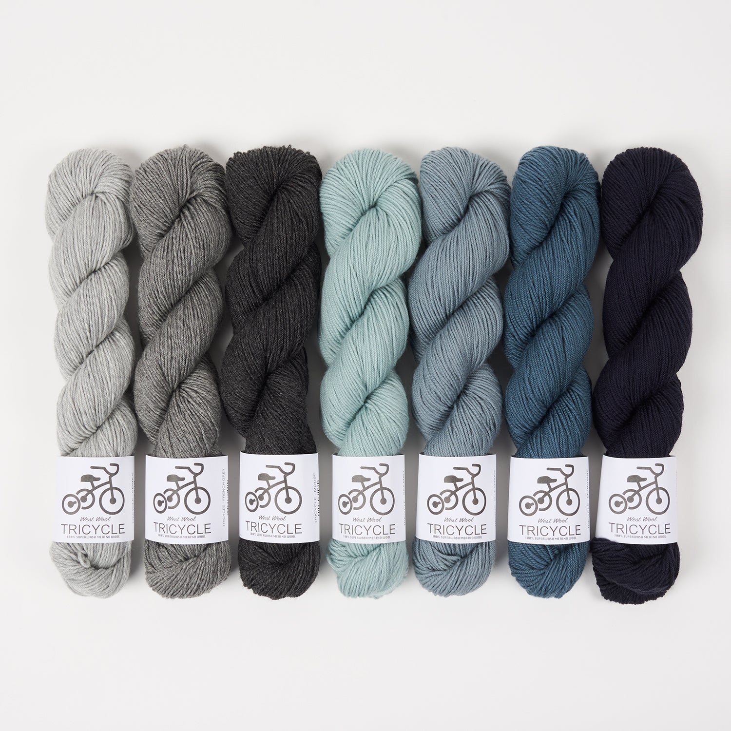 This beautifulWest Wool kit contains 14 skeins of fingering weight yarn. If you're looking for project inspiration, it will work up perfectly for any of theseWestknits shawls.