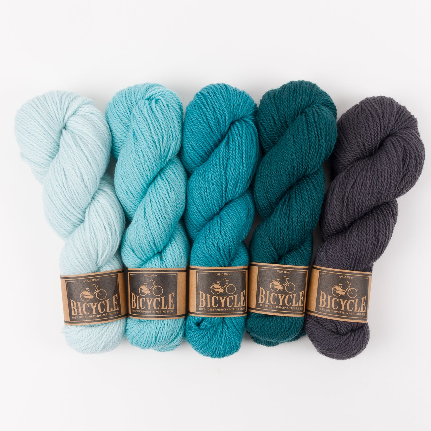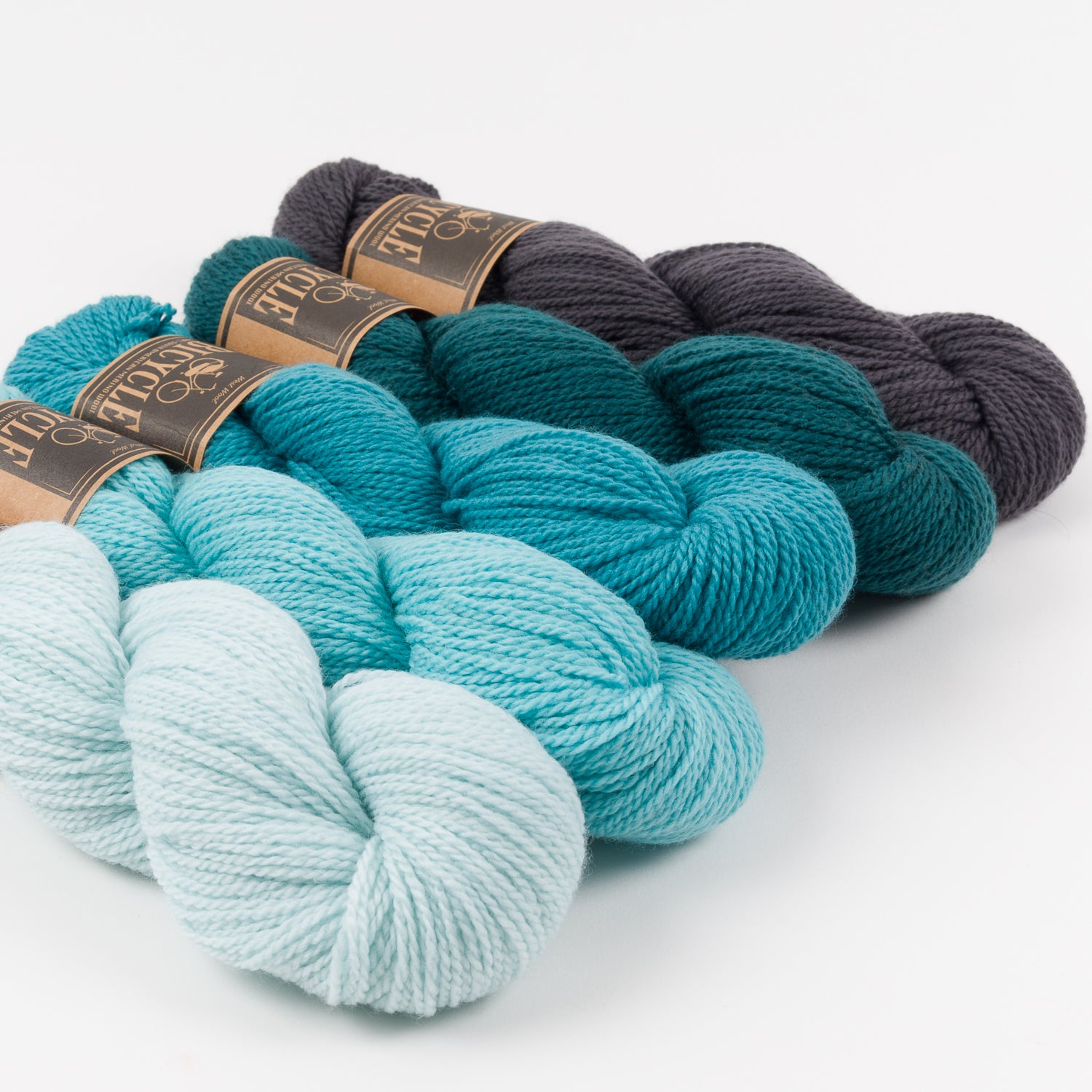 This beautiful West Wool kit contains ten skeins of fingering weight yarn. If you're looking for project inspiration, it will work up perfectly for any Westknits shawls.
