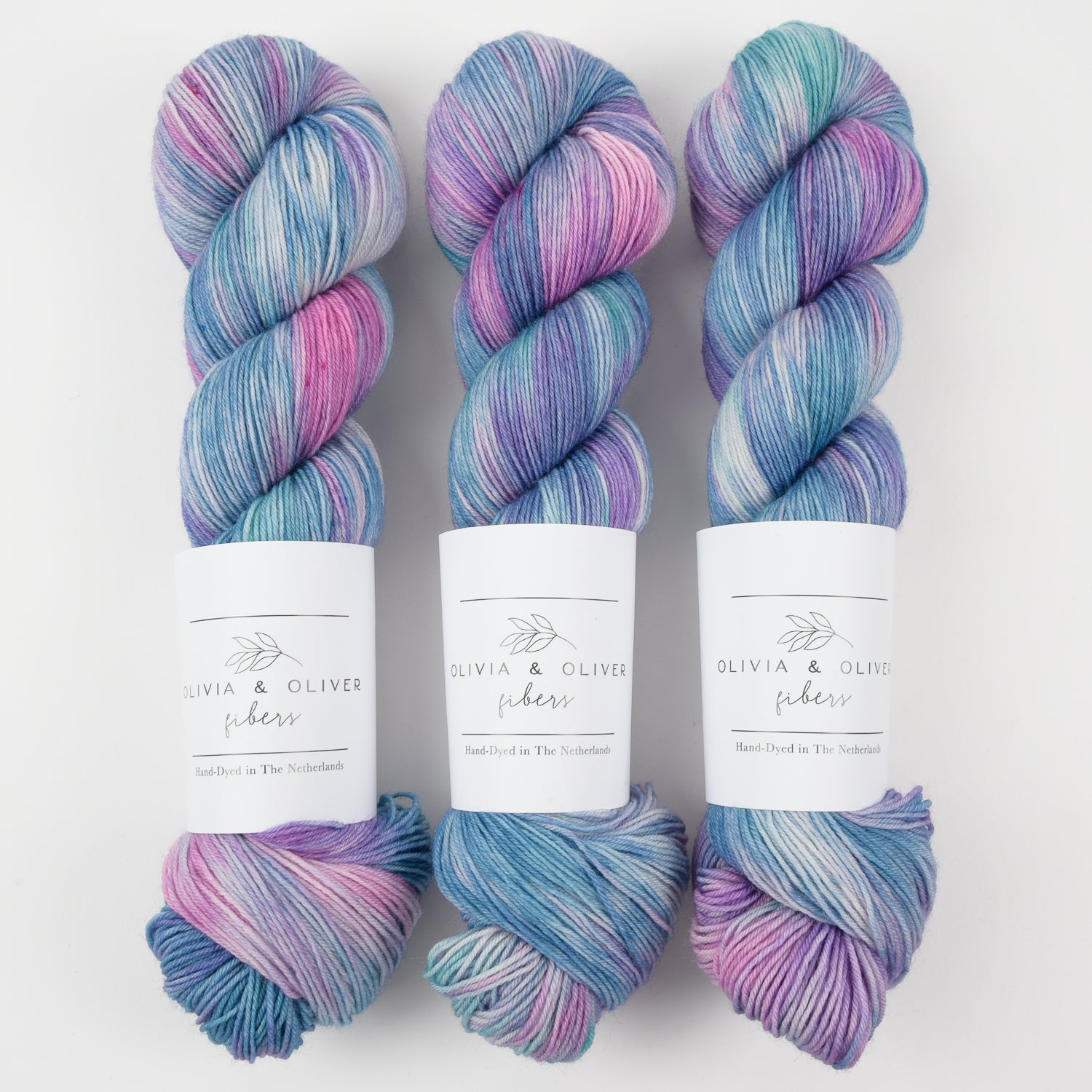Olivia BFL from Olivia and Oliver is hand dyed and beautifully pilling resistant for unique and long lasting projects.