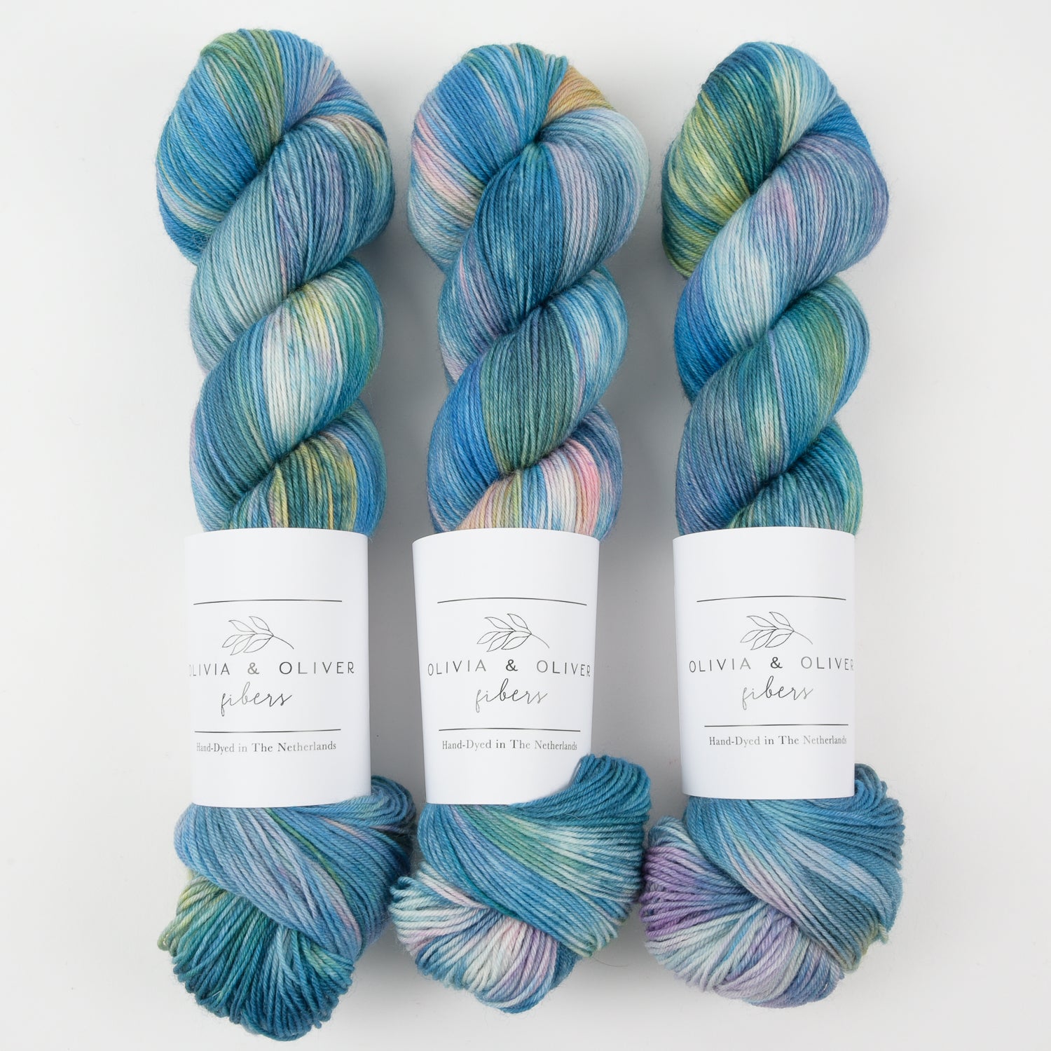 Olivia BFL from Olivia and Oliver is hand dyed and beautifully pilling resistant for unique and long lasting projects.
