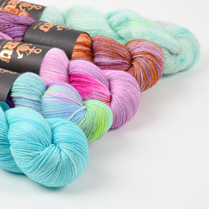 Due to the nature of hand dyed yarn, there may be some variation in colour between skeins. We take great care in photographing our yarns accurately, but some colours may vary slightly from the picture.