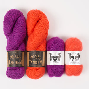 This beautiful kit fromWest Woolcontains two skeins of DK weight yarn and two skeins of fluffy mohair in two gorgeous contrasting colours. If you need inspiration, it can be used to knit the stunning Diamond Halo Hat from Westknits.