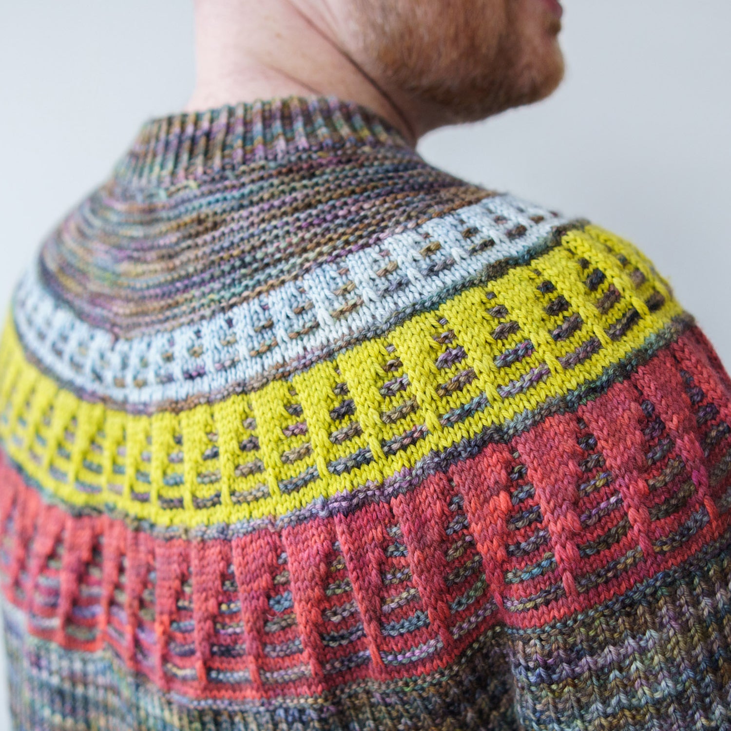 This kit was carefully hand picked to pair a gorgeous dominant colour with three contrasting shades for the colourful triangle yoke.
