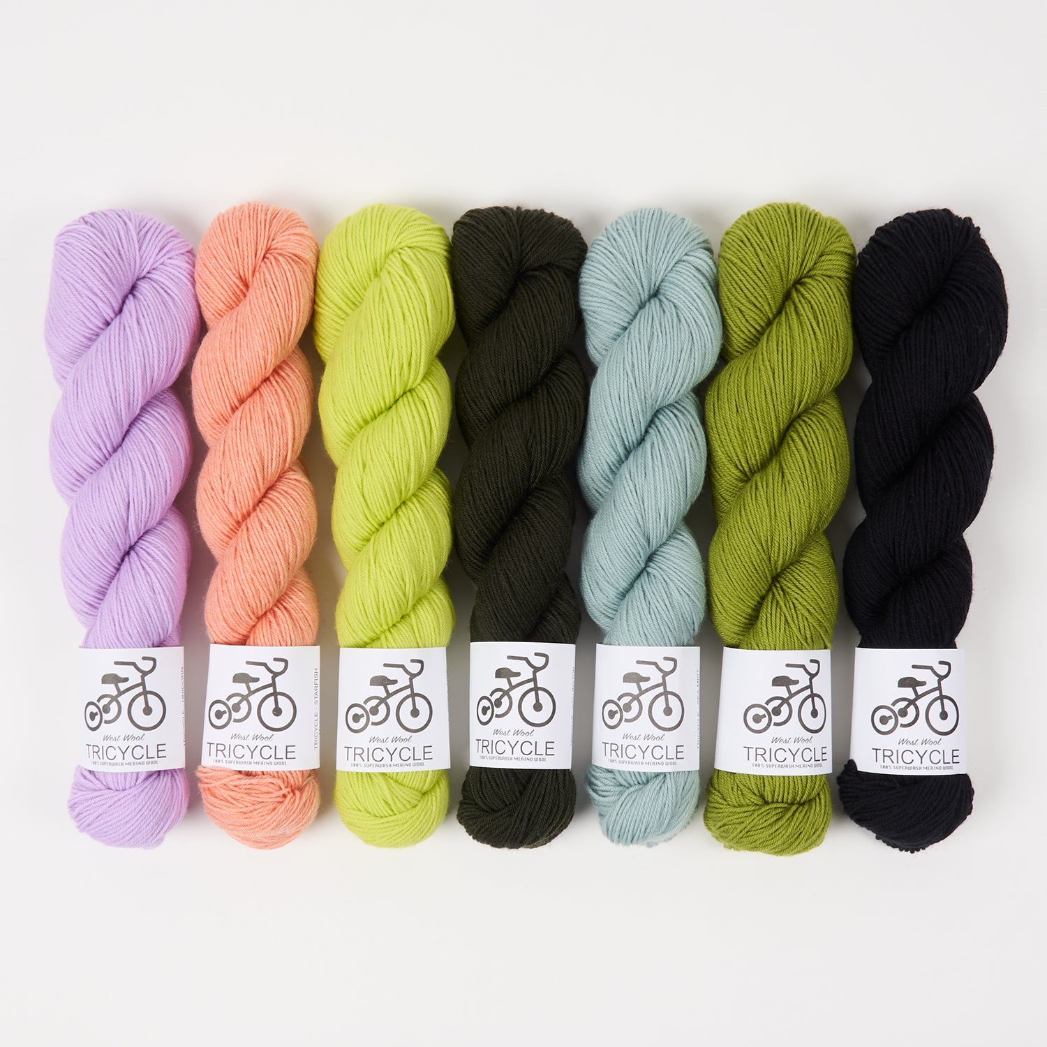 This beautifulWest Wool kit contains 14 skeins of fingering weight yarn. If you're looking for project inspiration, it will work up perfectly for any of theseWestknits shawls.