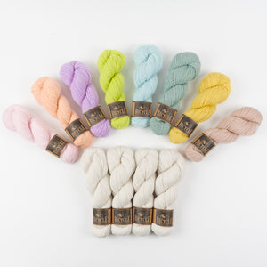 Yarn that is dyed in batches may have some variation in colour between skeins taken from different lots. We take great care in photographing our kits and yarns accurately, however colours may vary slightly from the pictures.