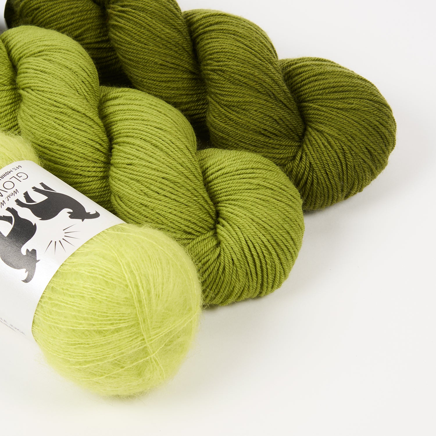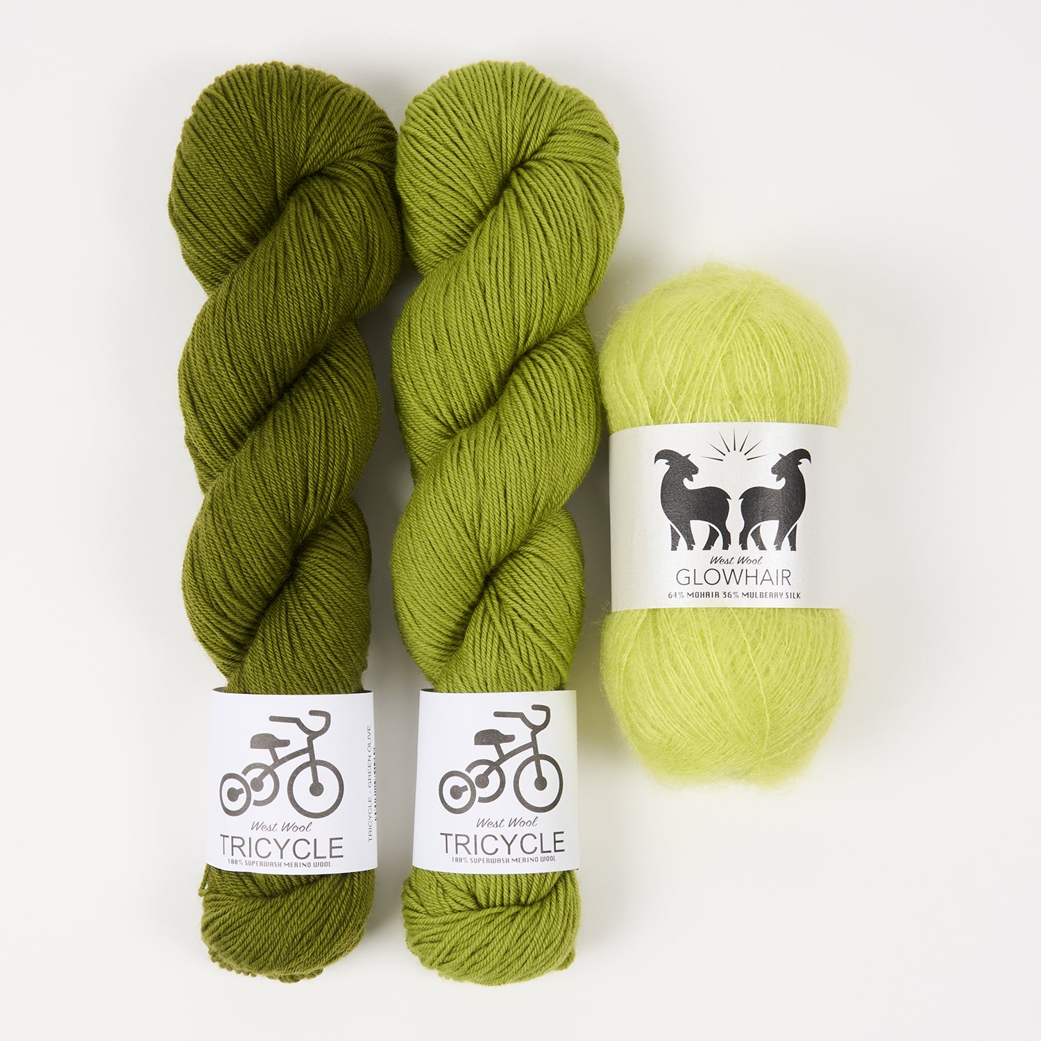 This stunning kit fromWest Woolcontains six skeins of fingering weight yarn and two balls of lace weight mohair in three gorgeous colours. If you need inspiration, it can be used to knit the splendidStriped Esjan Shawlby Westknits.