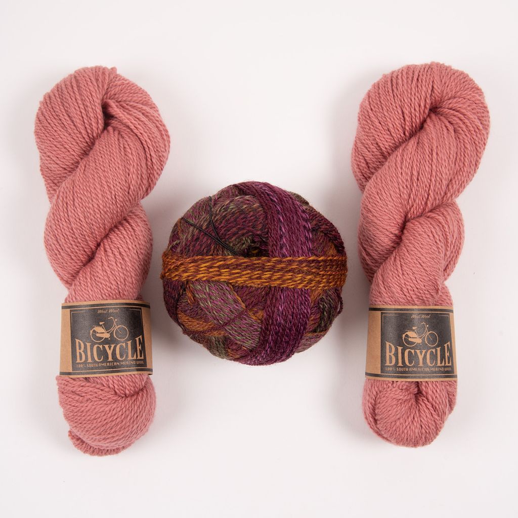 This dynamic duo contains two stunning solid skeins of West Wool and a self-striping contrast from Schoppel-Wolle, both in fingering weight yarn. If you need inspiration, it can be used to knit any of these Westknits Patterns.
