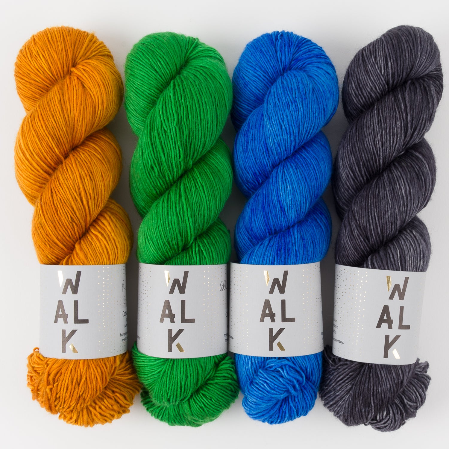 This gorgeous WALK Collection kit contains four skeins of fingering weight yarn. If you need inspiration, it can be used to knit Mautinoa by Malia Mae Joseph or any of these Westknits shawls