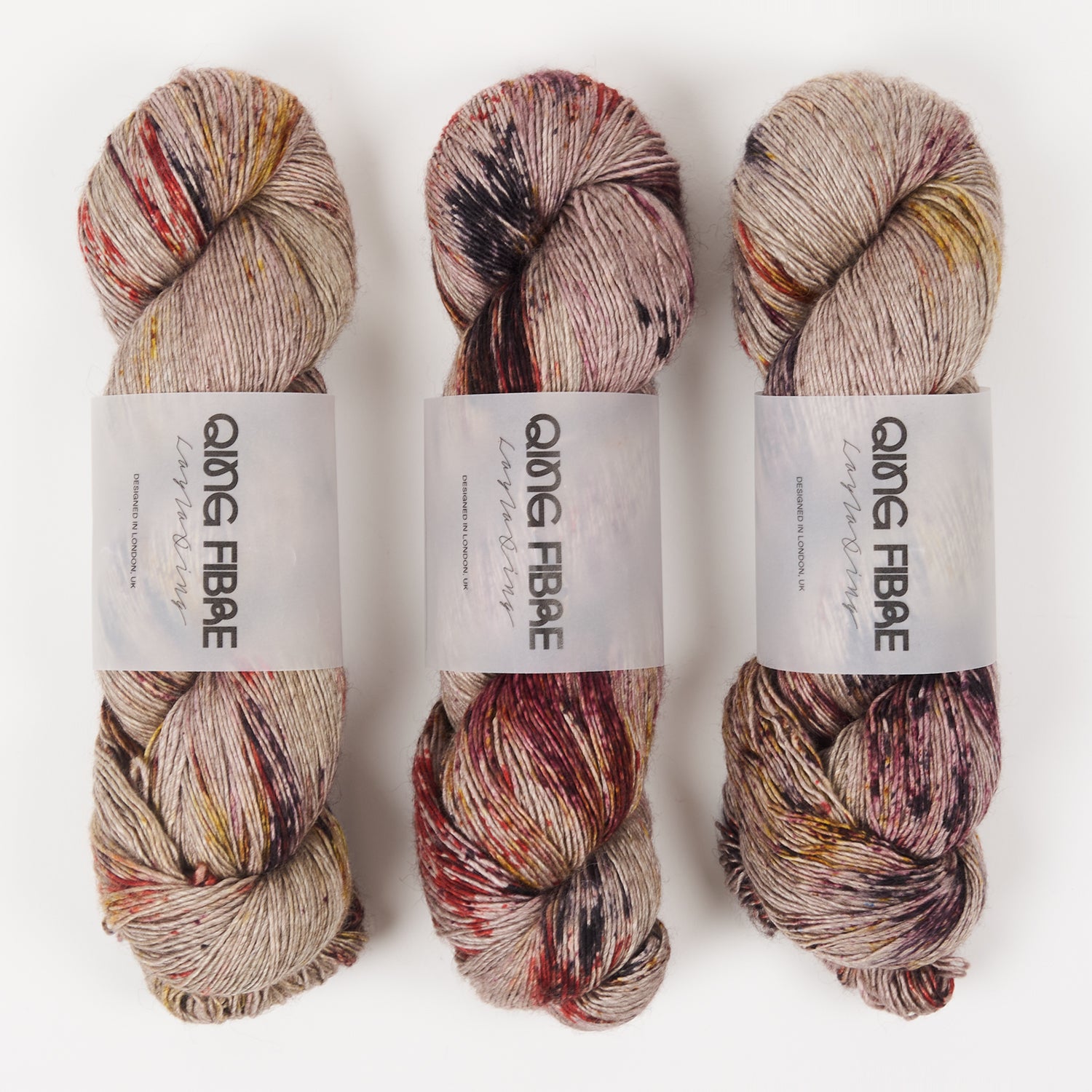 The lavish Yak Silk base from Qing Fibre is a dreamy blend of superwash merino, silk, and yak perfect for delightfully soft garments and accessories.