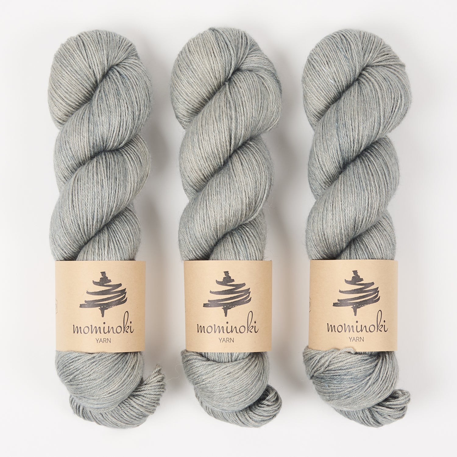 Ramie Silk from Mominoki Yarn is a fingering weight yarn spun from wool, silk, and ramie fibre, perfect for long lasting projects.