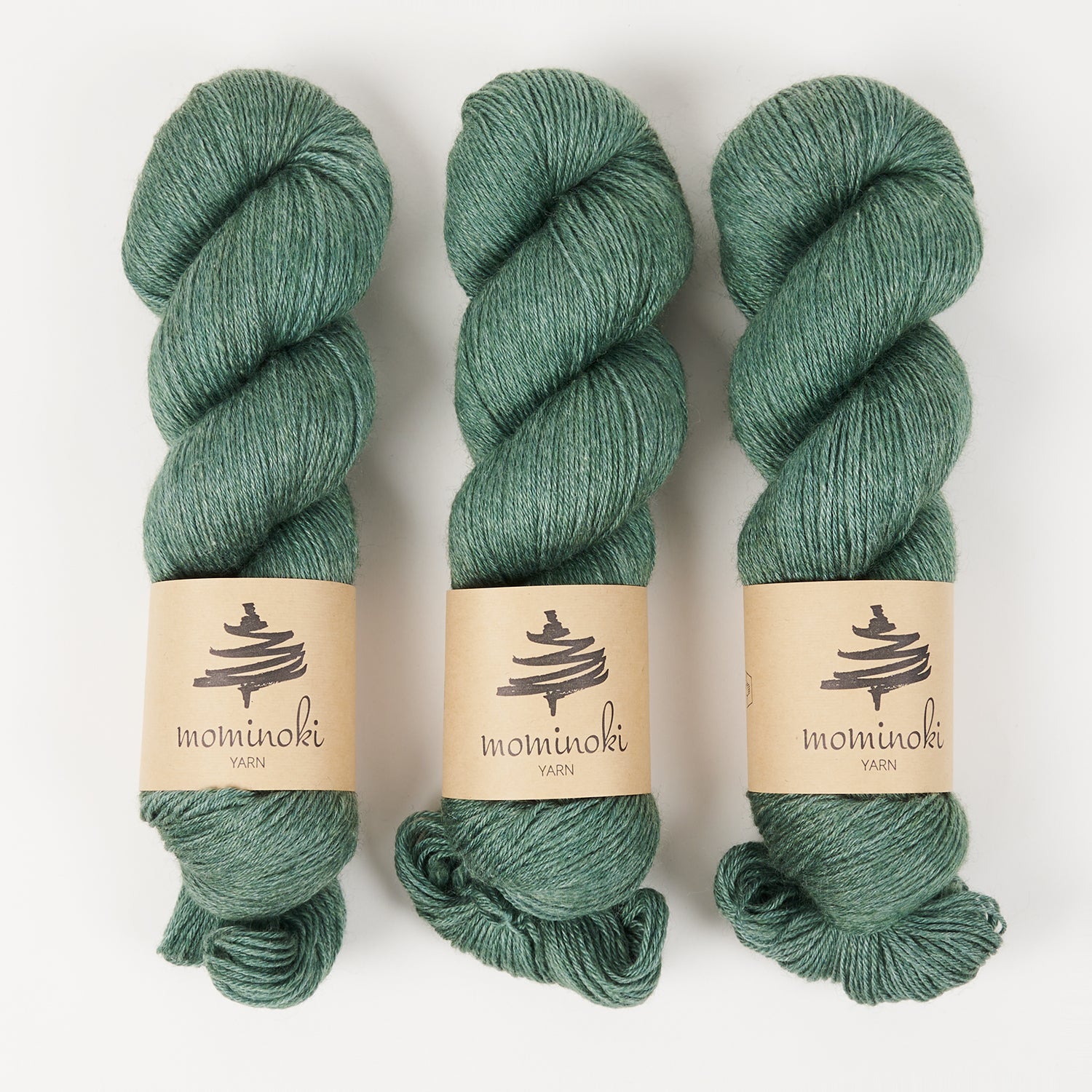 Ramie Silk from Mominoki Yarn is a fingering weight yarn spun from wool, silk, and ramie fibre, perfect for long lasting projects.