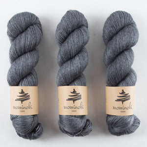 Ramie Silk from Mominoki Yarn is a fingering weight yarn spun from wool, silk, and ramie fibre, perfect for long lasting projects.