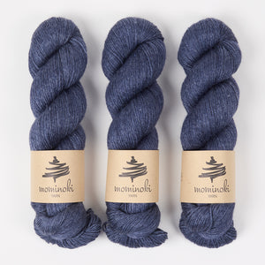 Ramie Silk from Mominoki Yarn is a fingering weight yarn spun from wool, silk, and ramie fibre, perfect for long lasting projects.