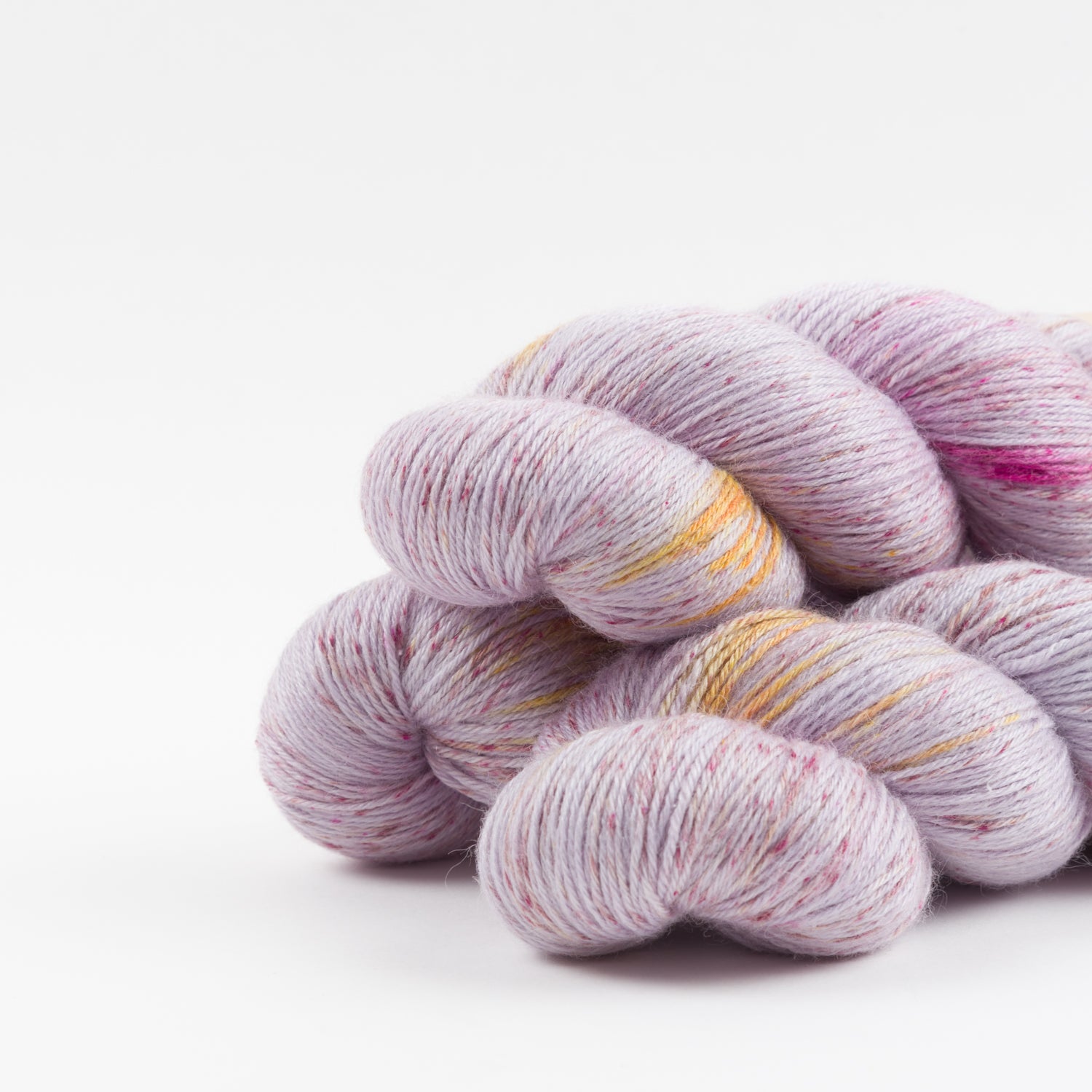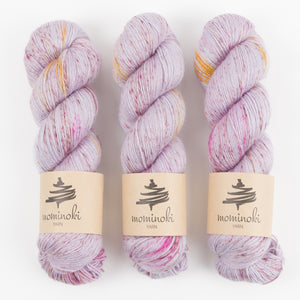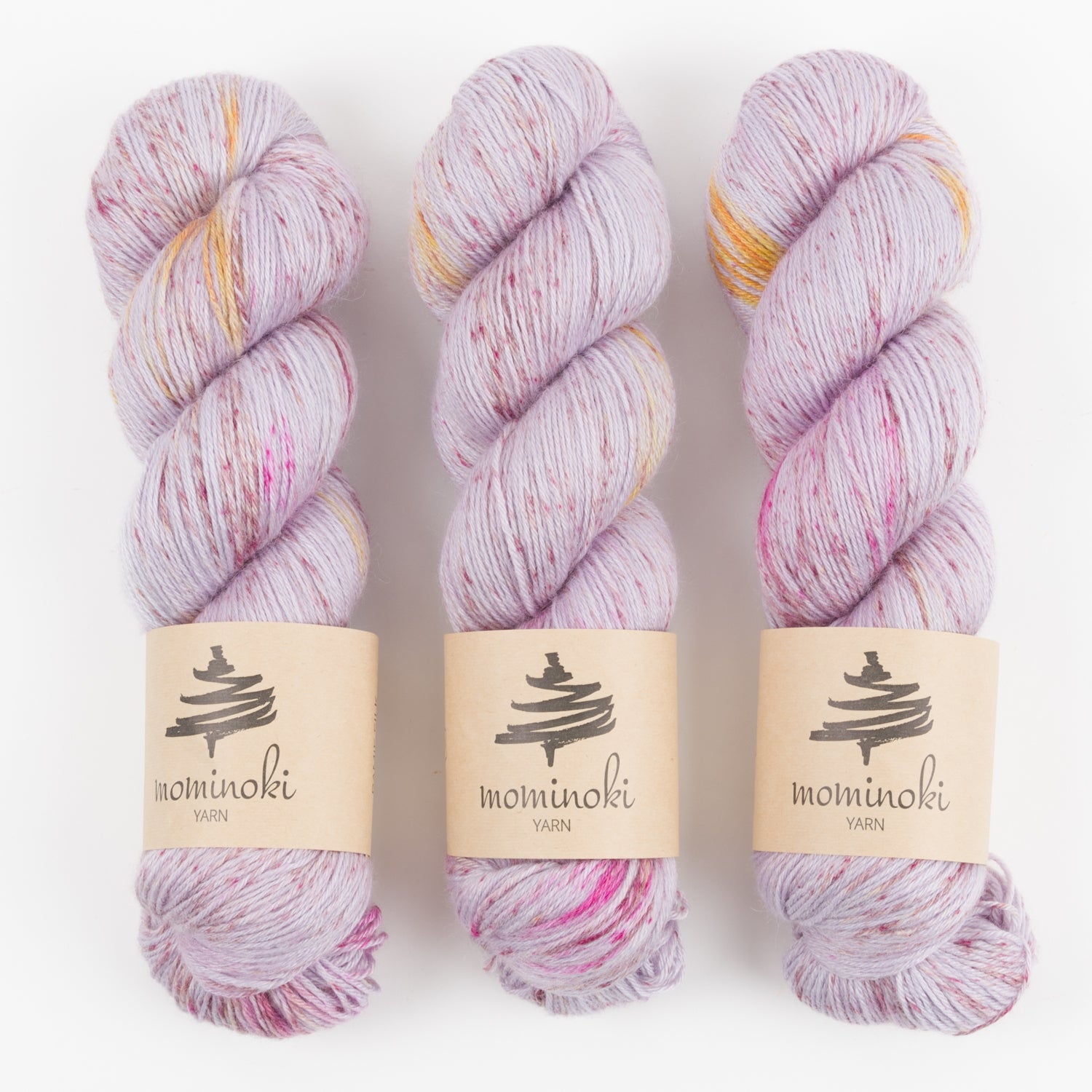 Ramie Silk from Mominoki Yarn is a fingering weight yarn spun from wool, silk, and ramie fibre, perfect for long lasting projects.