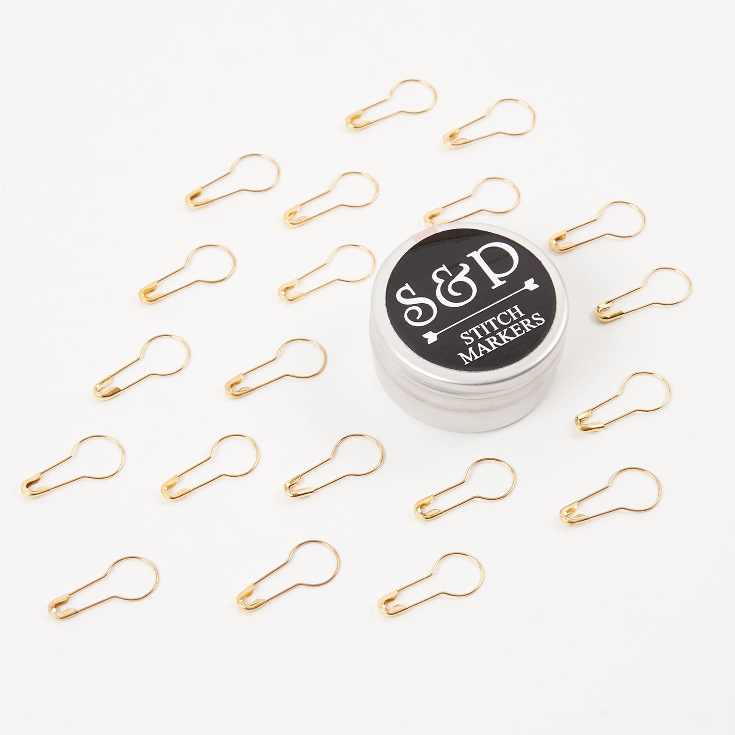 These handy little golden stitch markers are perfect to for making sure you know where you are in your project, marking pattern repeats, catching dropped stitches and a multitude of other uses. They come in sets of 20 packed in a screwtop tin to keep them safe. We love their cheery golden glimmer as a contrast against darker yarns.