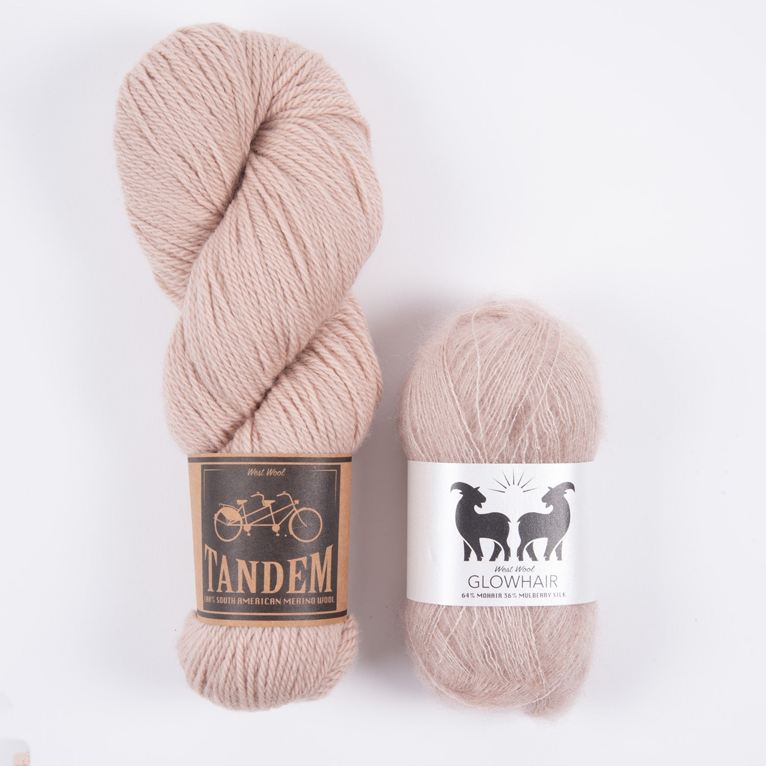 This stunning kit from West Wool has one skein of delicious DK weight yarn and one matching ball of mohair lace to add extra fluffy goodness to your project.