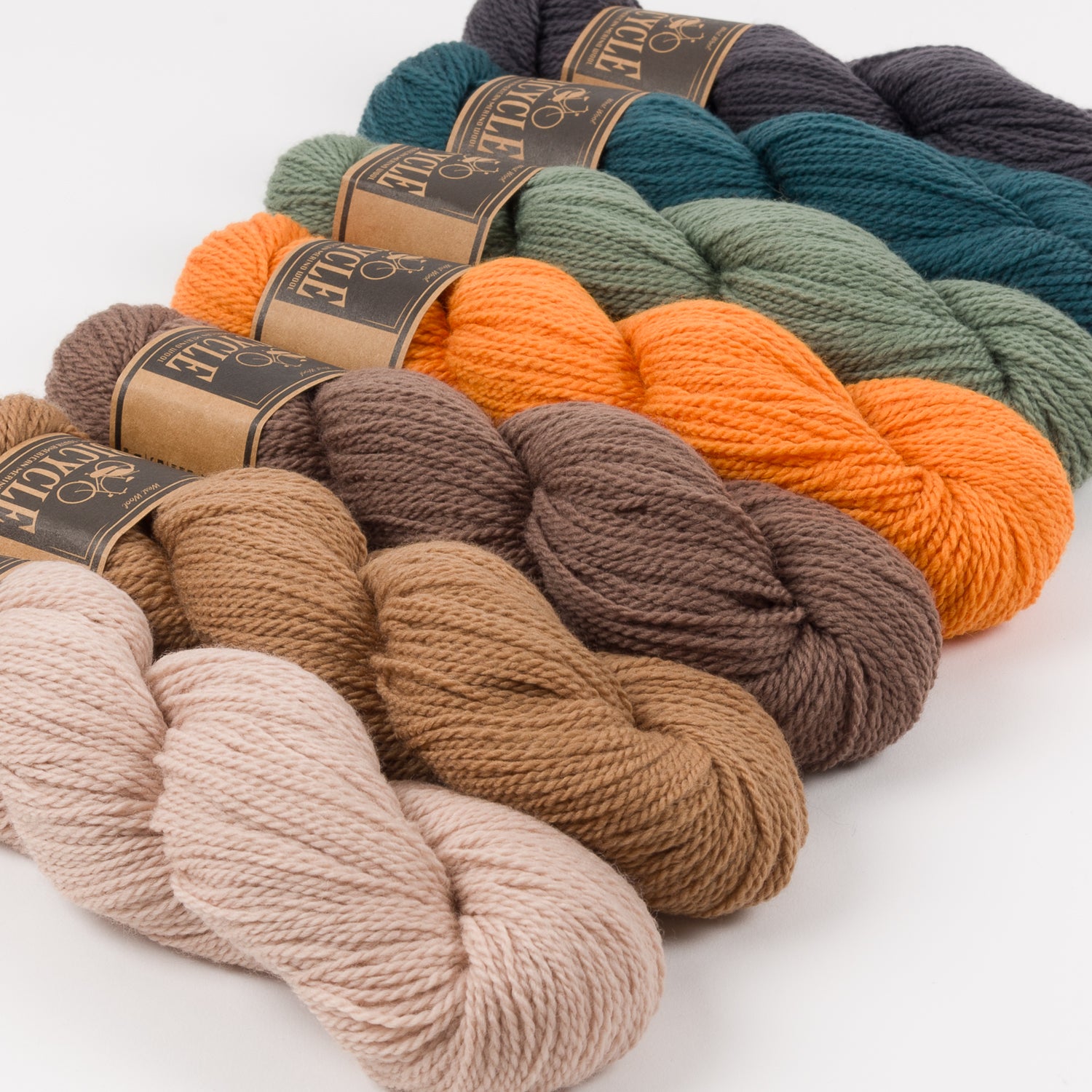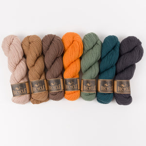This beautiful West Wool kit contains 14 skeins of fingering weight yarn. If you're looking for project inspiration, it will work up perfectly for any of these Westknits shawls.