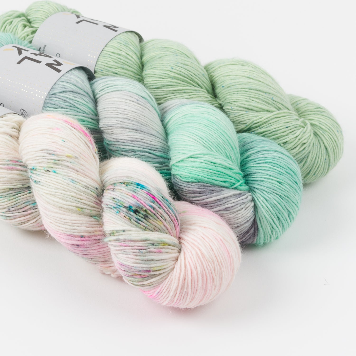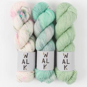 This gorgeous kit from WALK Collection contains three skeins of fingering weight yarn. If you need inspiration, it can be used to knit any of these Westknits shawls