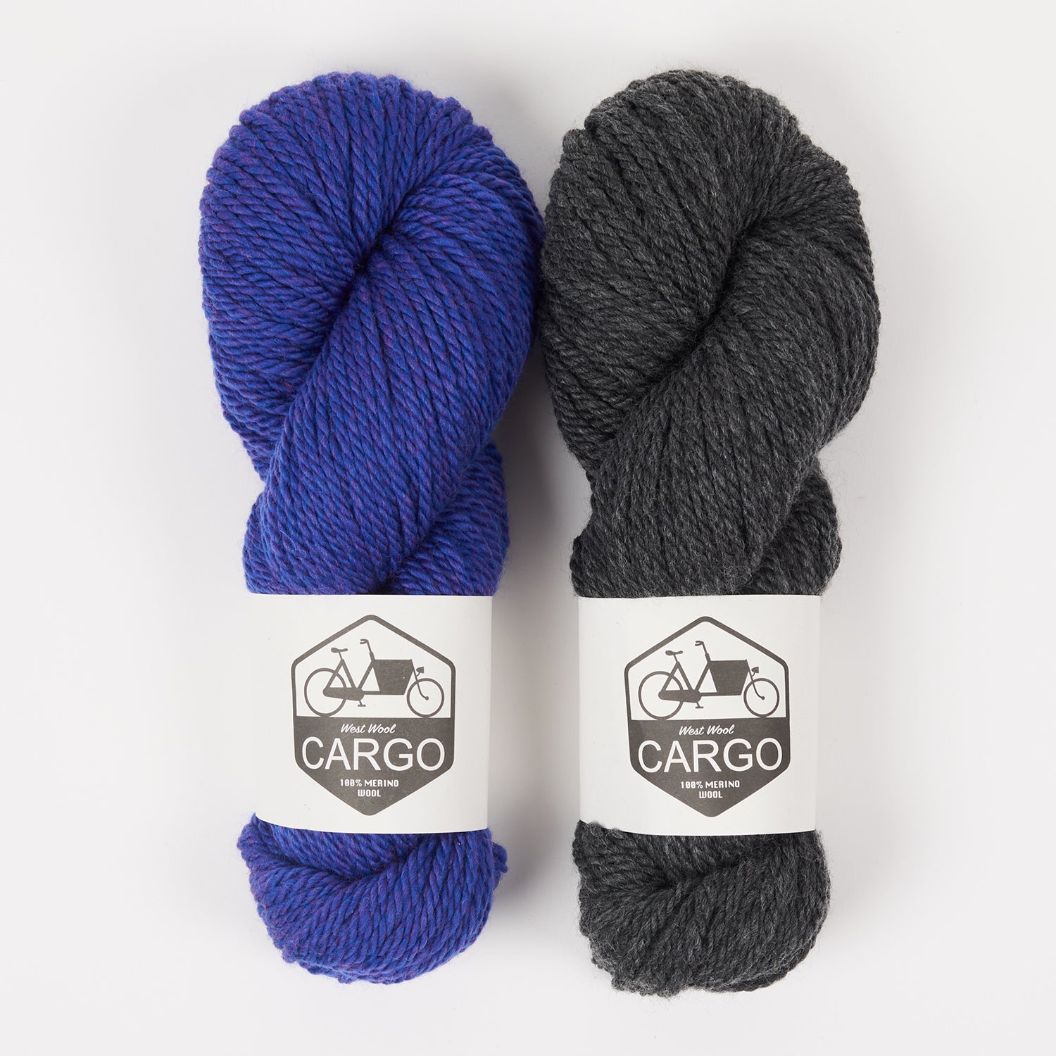 This fabulous kit features six skeins of West Wool chunky weight Cargo in two contrasting colours. If you need inspiration, it works wonderfully for the Slip 'n Slide Shawl from Westknits!