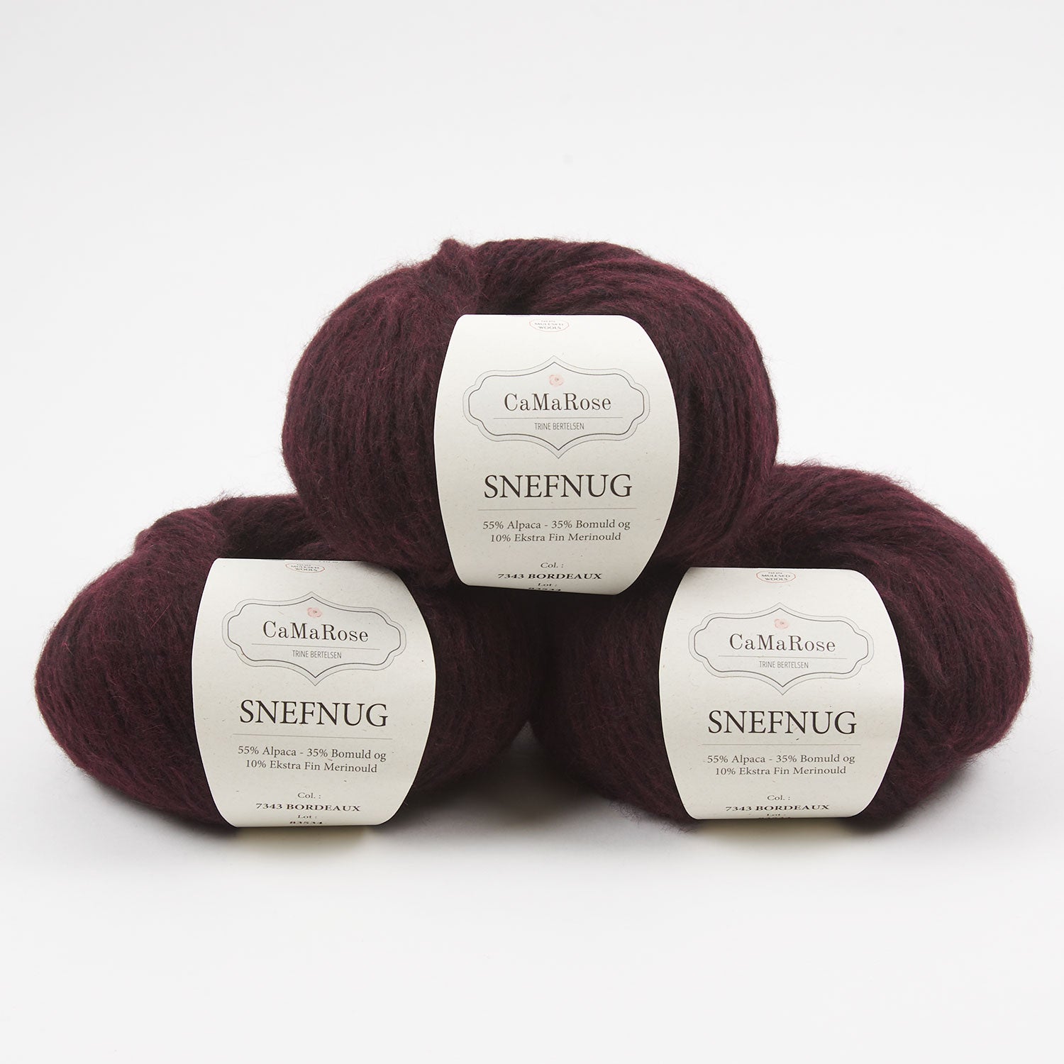 When purchasing Snefnug from CaMaRose, we recommend you purchase enough yarn for your project to ensure consistency.
