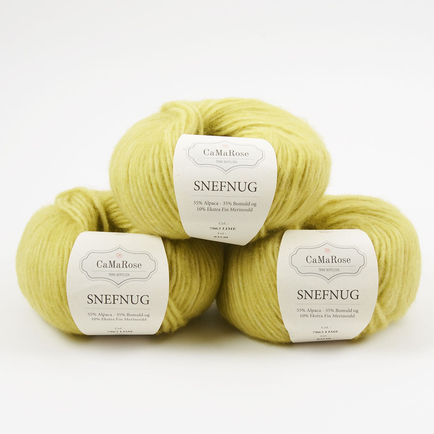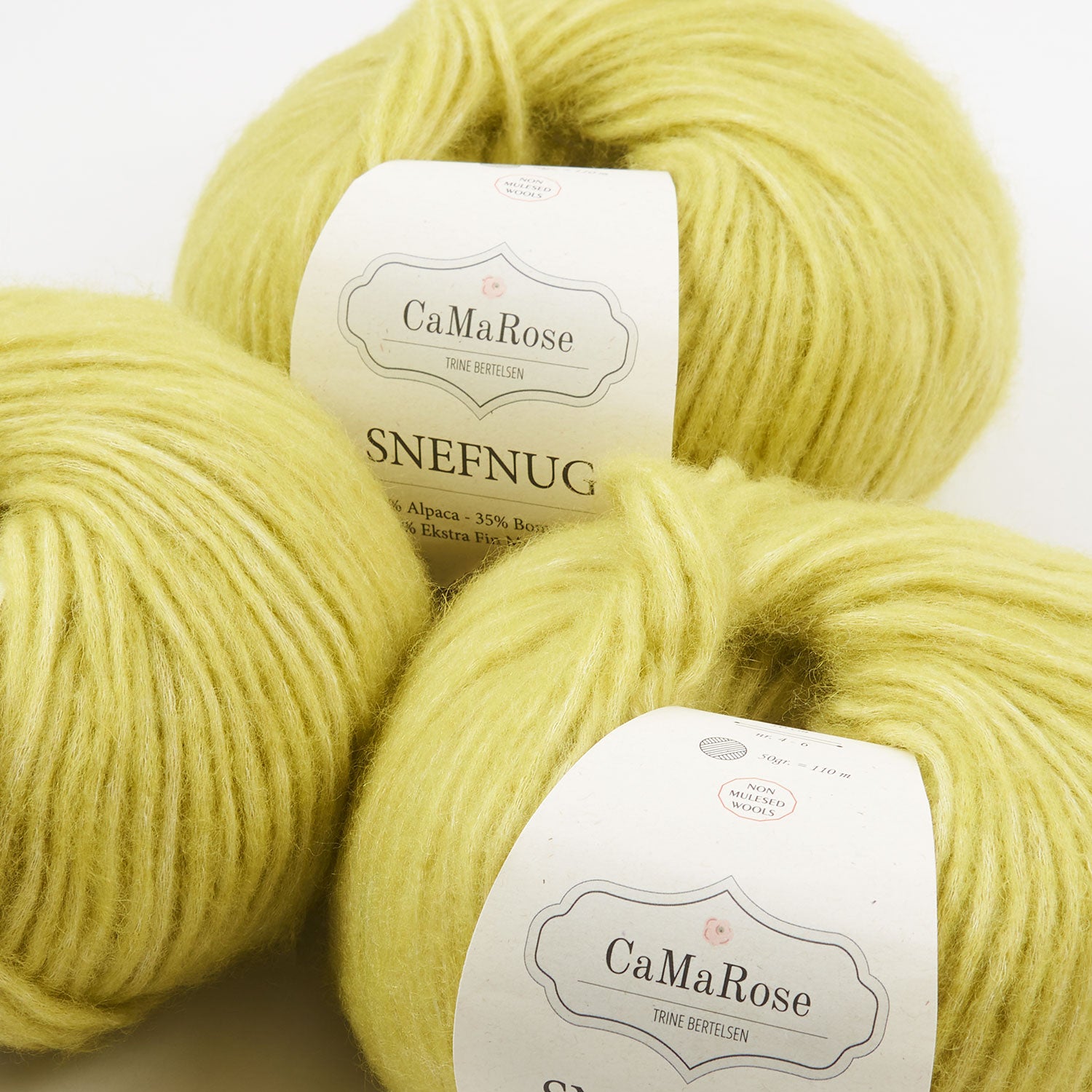 When purchasing Snefnug from CaMaRose, we recommend you purchase enough yarn for your project to ensure consistency.