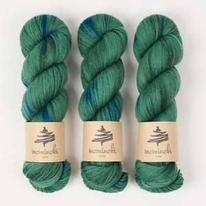 Mominoki Yarn's gorgeously soft Sock Fine 4ply is a fingering weight yarn spun from superwash merino and polyamide, perfect for garments and accessories that are both long lasting and beautiful.