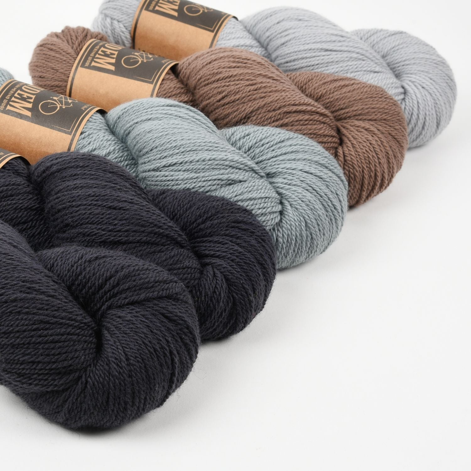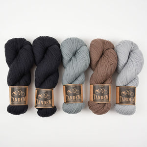 This wonderfully warm kit from West Wool contains five skeins of DK weight yarn. With a main colour and three stunning contrasts, this kit can be used to knit any of these Westknits shawls