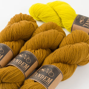 • Sizes S and M: 5 skeins West Wool Tandem in Tiger