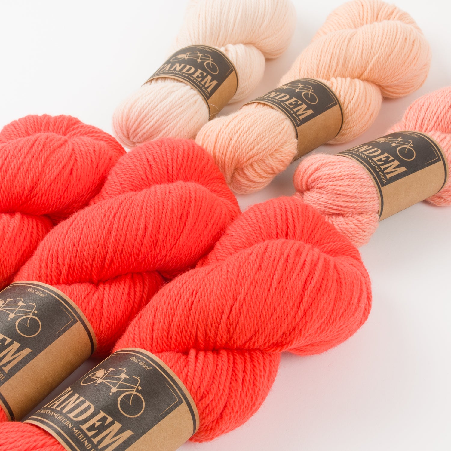 • Size 4, 5, 6: 5 skeins West Wool Tandem in Beatrix