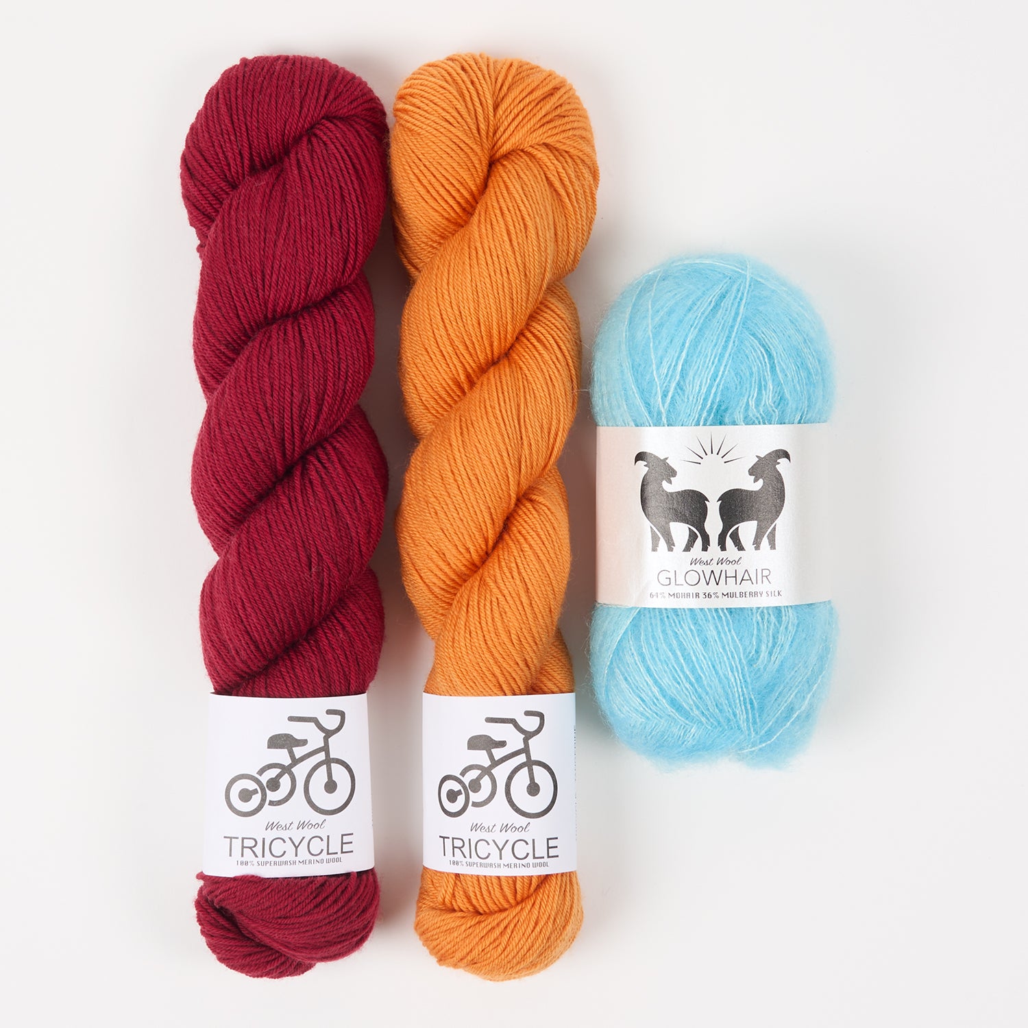 This stunning kit fromWest Woolcontains six skeins of fingering weight yarn and two balls of lace weight mohair in three gorgeous colours. If you need inspiration, it can be used to knit the splendidStriped Esjan Shawlby Westknits.