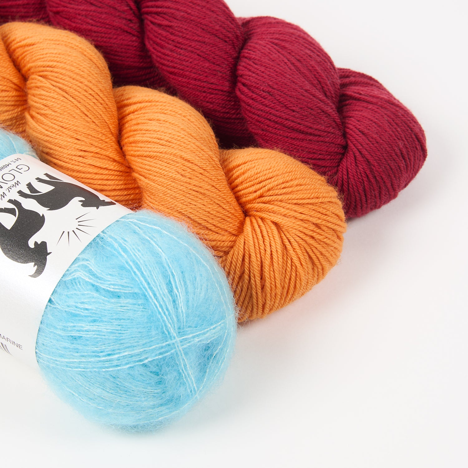 Yarn that is dyed in batches may have some variation in colour between skeins taken from different lots. We take great care in photographing our kits and yarns accurately, however colours may vary slightly from the pictures.