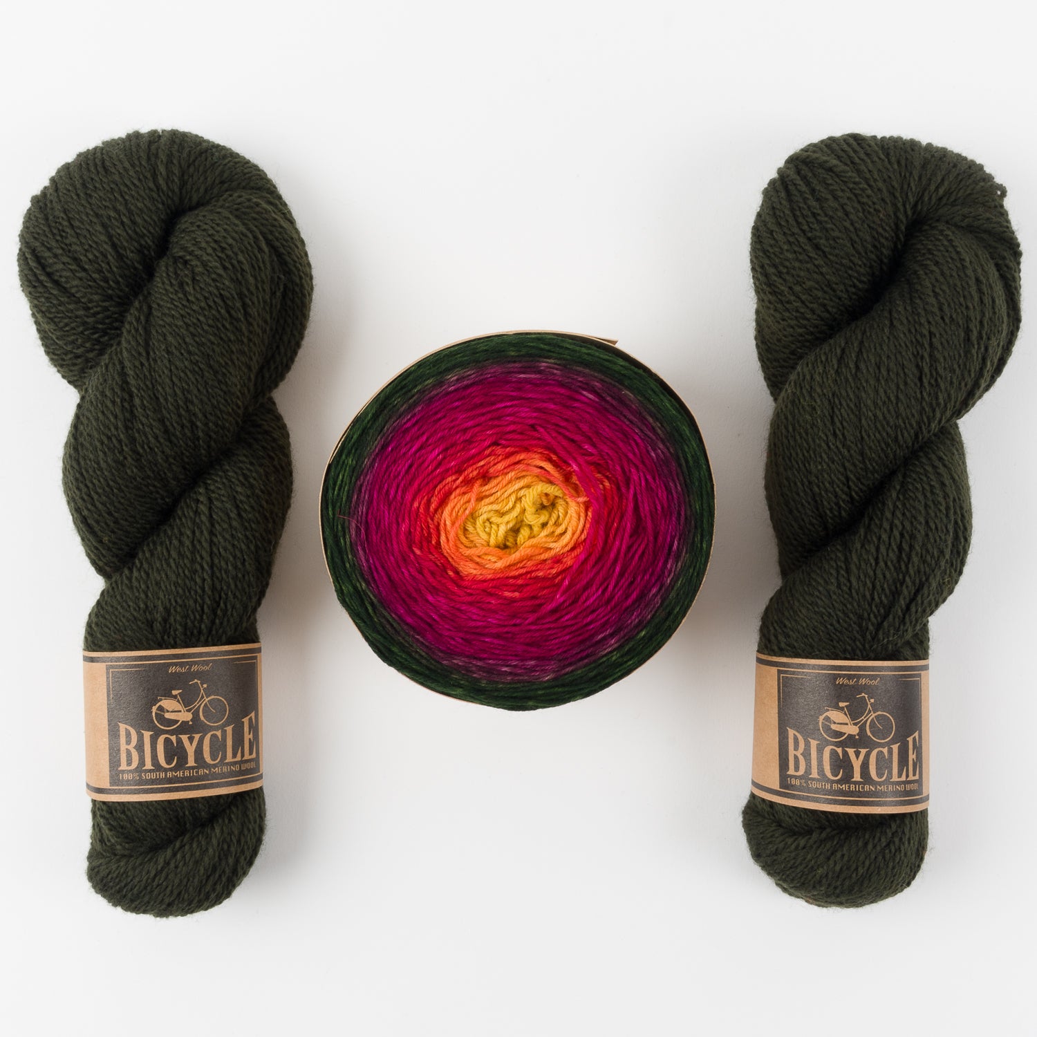 This beautiful four skein kit uses a solid yarn fromWest Wool together with a beautiful gradient fromBilum and is selected especially for patterns designed for this combination!