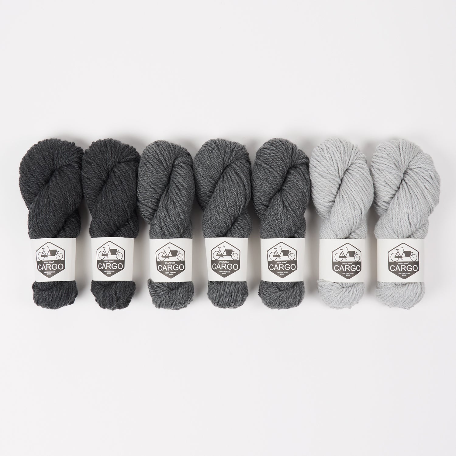 This fabulous kit features seven skeins of West Wool chunky weight Cargo in three contrasting colours. If you need inspiration, it works perfectly for the Esjan Shawl by Westknits!