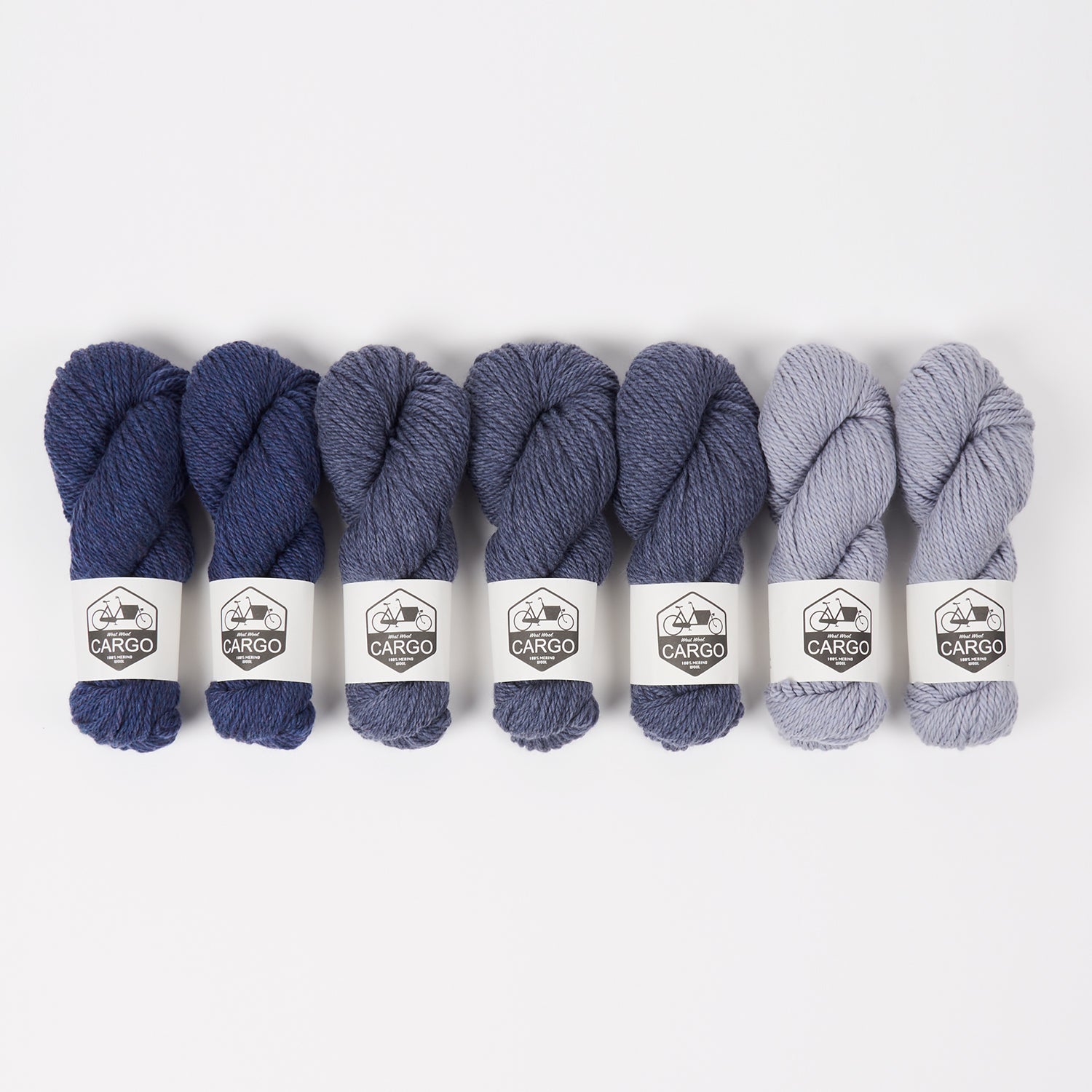 This fabulous kit features seven skeins of West Wool chunky weight Cargo in three contrasting colours. If you need inspiration, it works perfectly for the Esjan Shawl by Westknits!