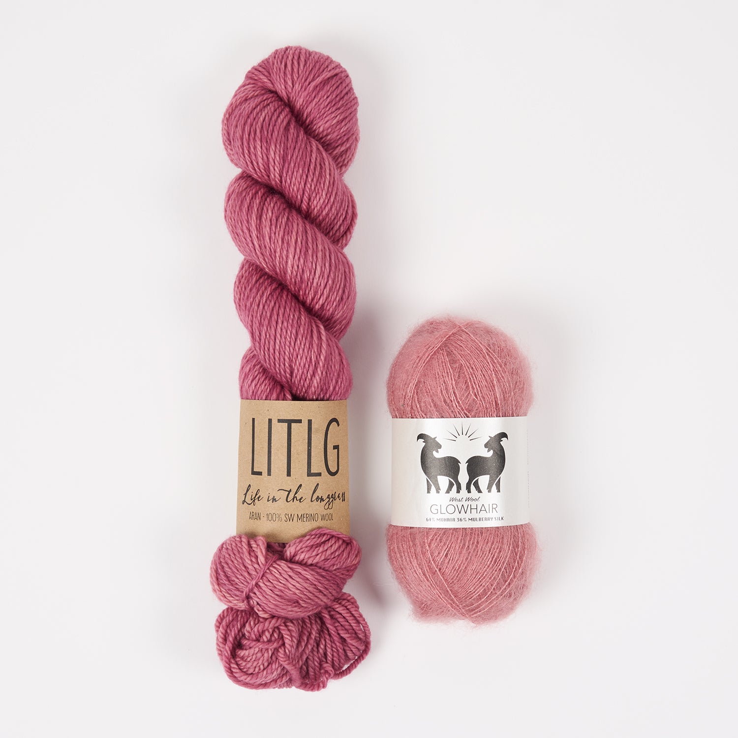 This captivating kit features one lovely skein of Life in the Long Grass' Merino Aran paired with a matching lace weight ball of Glowhair from West Wool. If you need inspiration, it works perfectly to knit the Fir Rib Hat from Westknits!